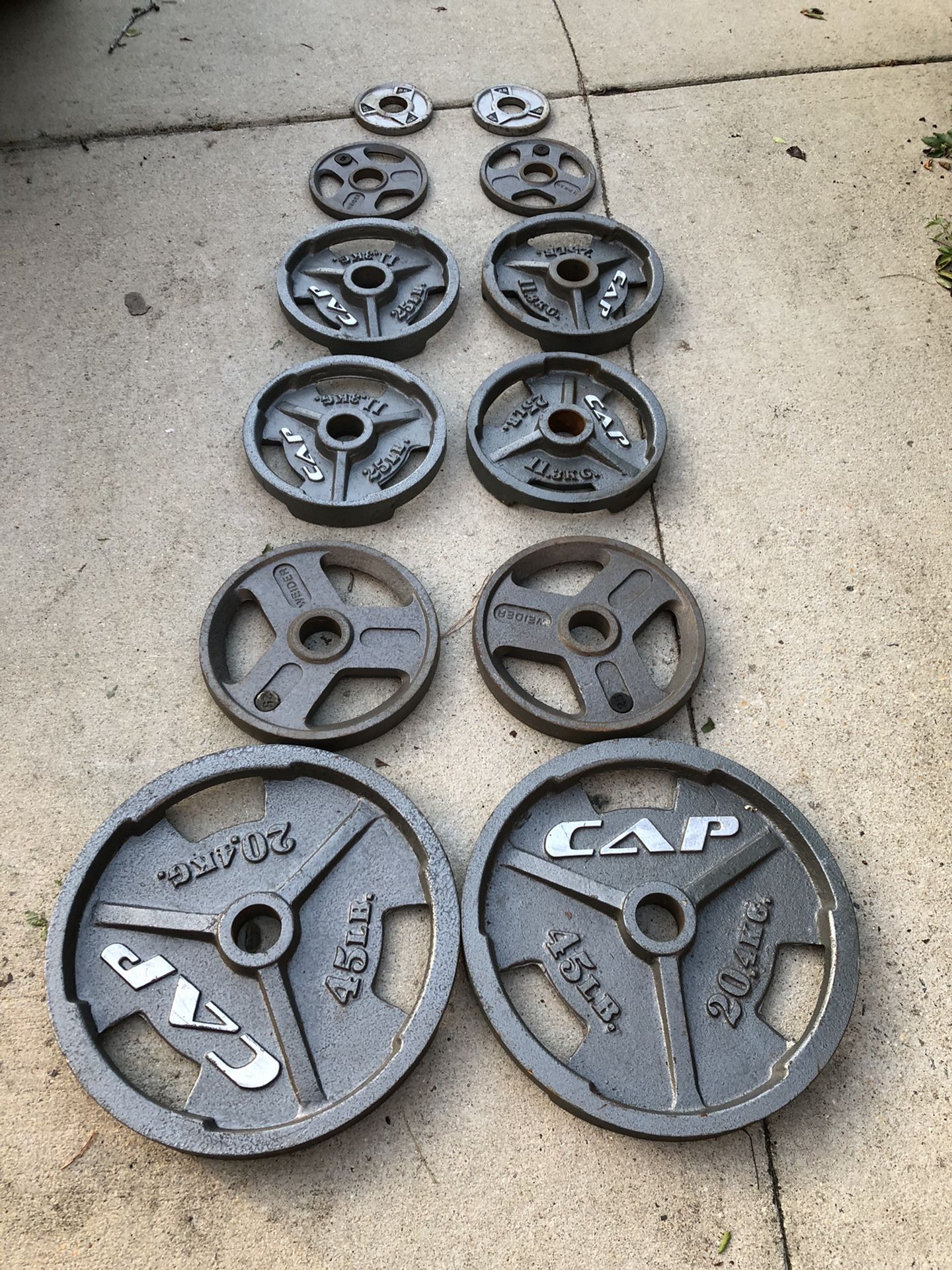Deep dish Olympic plate set great condition. Also have lots more exercise equipment tex if you are looking for something.