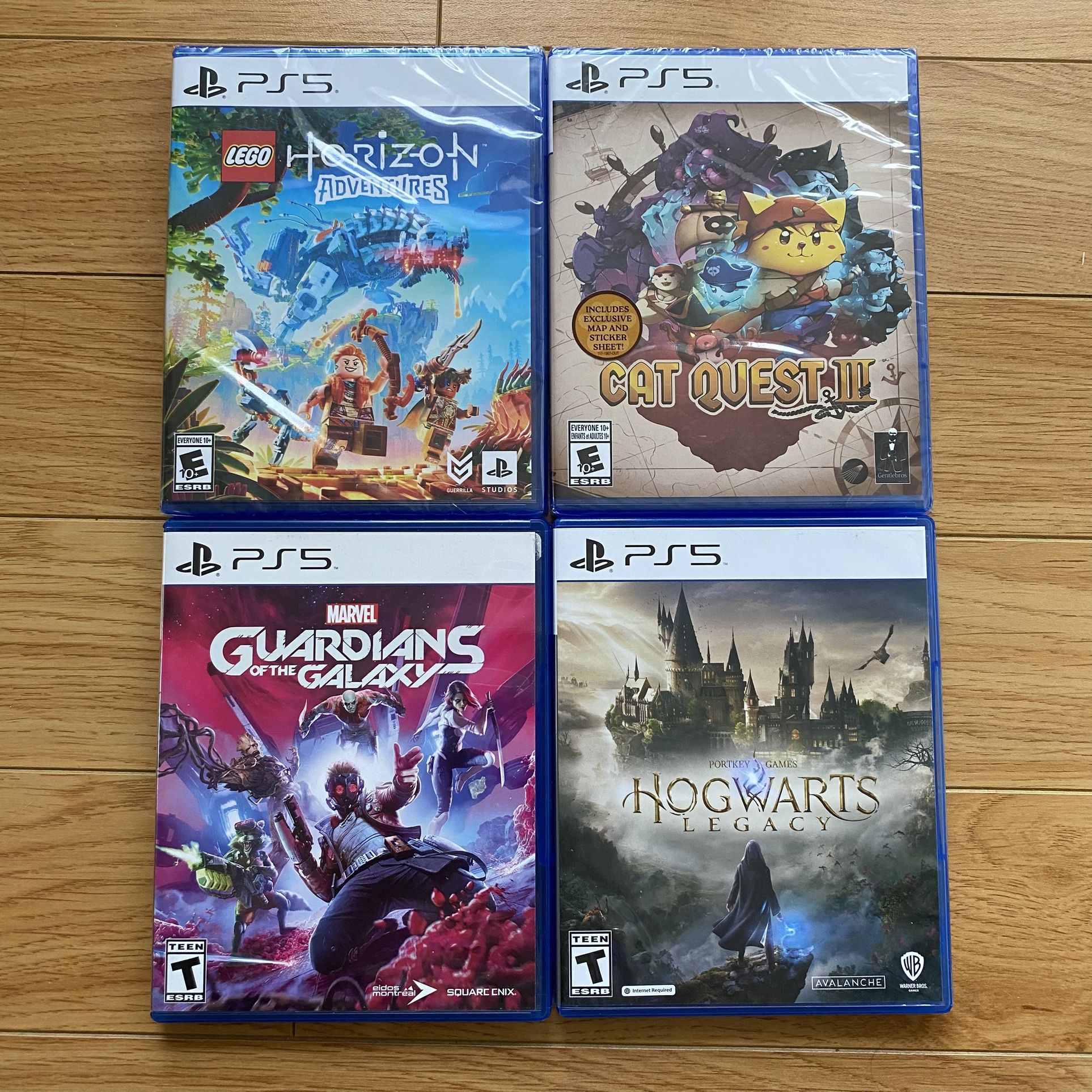 Bundle of 4 fun games for PlayStation 5! The two on the top are brand new/sealed. $65 price firm, pickup in Reedville Hillsboro. Lego Horizon Adventures Cat Quest 3 Hogwarts Legacy Marvel’s Guardians of the Galaxy