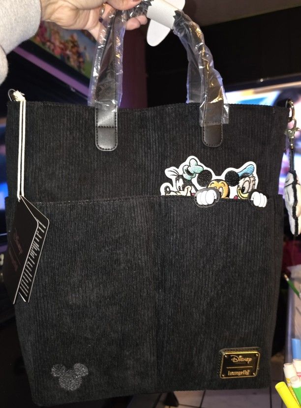 Brand New! Loungefly Disney Mickey & Friends Peeking Pocket Corduroy Tote Bag