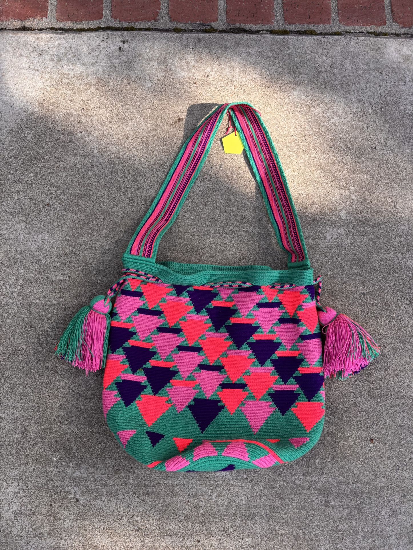 Colorful Tote Bag - Iconic & Unique Modern Bag Beautiful, exotic yet, perfect modern bag with an eye-catching pattern. This beautiful bag was handmade in Colombia by local tribes and is a cultural symbol that supports Colombian handicrafts. This bag is perfect for any day and any moment, making you feel stylish at the beach, street, going to work, or during a date. Fits medium size laptops and all your day-to-day essentials. Material: 100% premium cotton yarn, guaranteeing strong durability, longevity in the products, and absolute color retention. The bag is handmade, so please allow some small design or size differences. Machine washable in cold water.