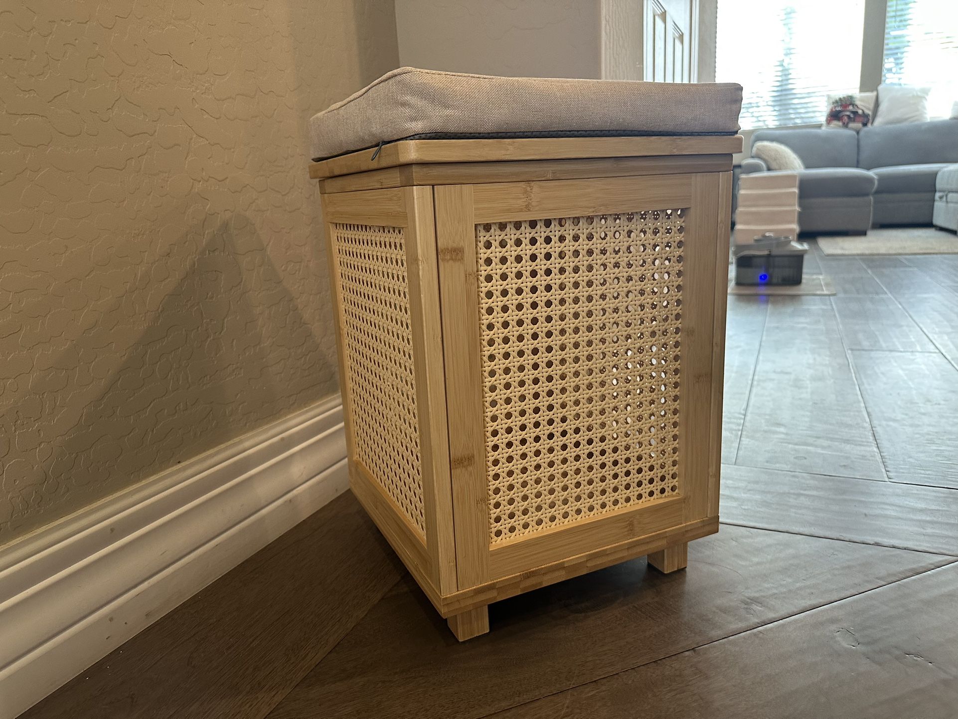 Atoping Square Storage Ottoman, Bamboo Rattan Weave w Removable Cushion Top