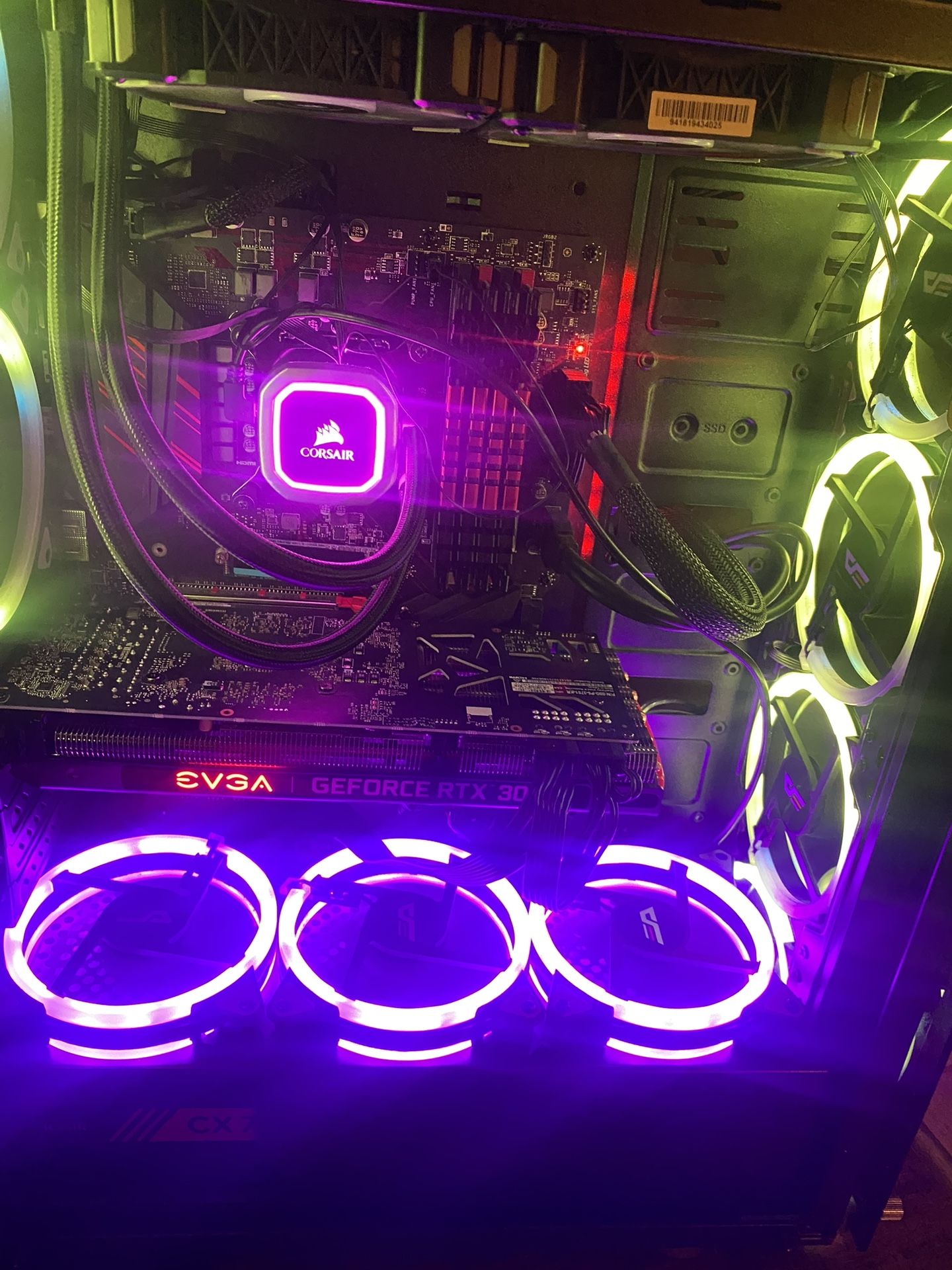 MSI motherboard Intel ig 9900k cpu Corsair AlO Gskillz 32gb ram Storage: 1TB M.2 nvme SSD 2TB HDD Graphics card: Evga FTW3 3070 GPU LG(gk650F). 1440p 144hz monitor. Hp 1080p 27' for second monitor Built back in 2021-22. Adult owned, smoke free home. Was pushing 100+ fps on indie games 90+ fps on Cod and AAA Games. $700 obo