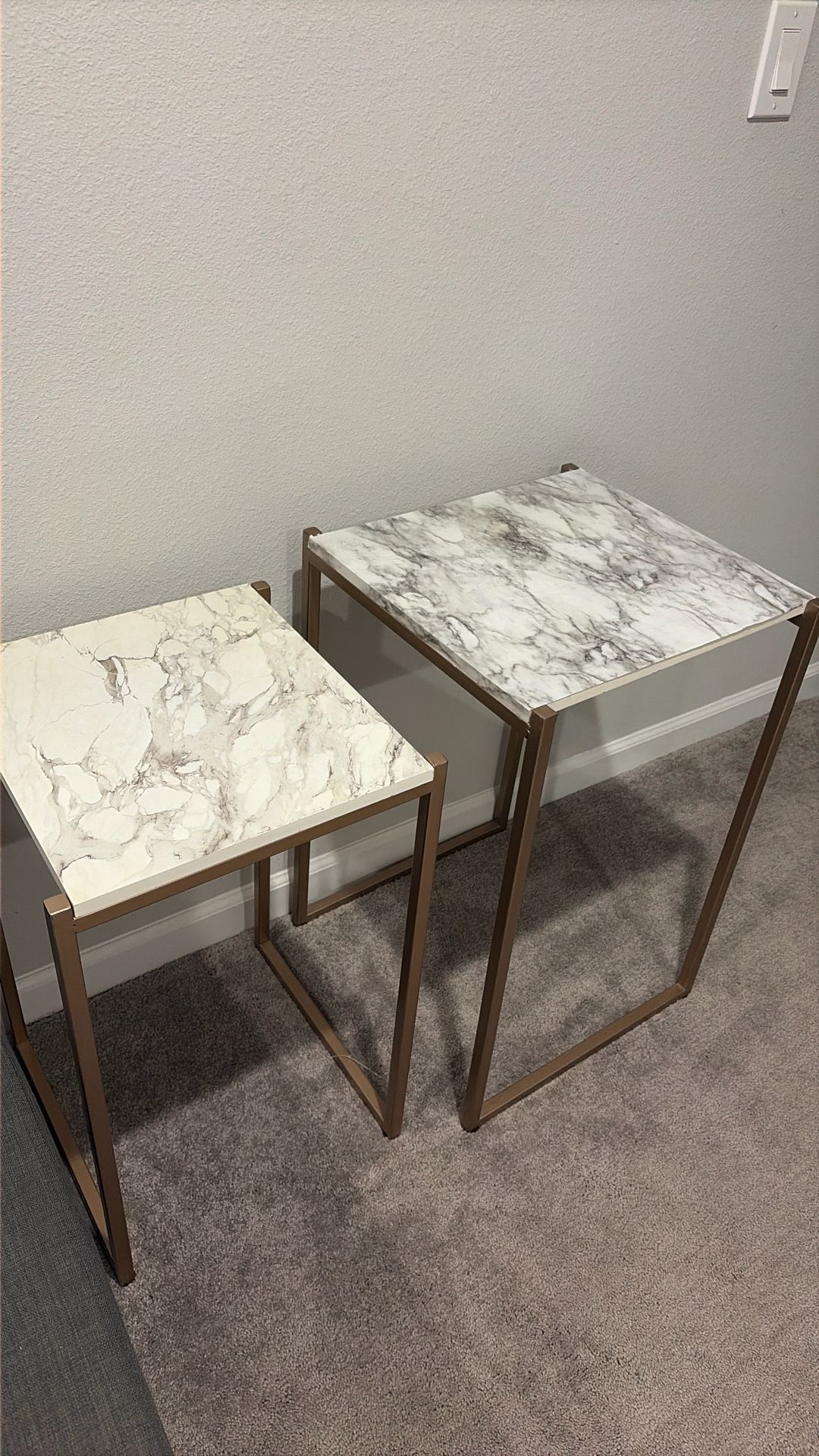 Metal legs are a rose gold color, great for decor in a ladies room