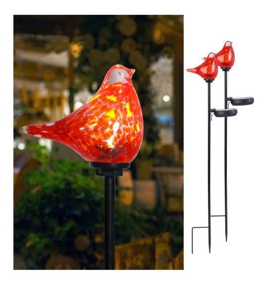 Glass bird solar stakes, 31 inches tall. Brand new. Great additions to your patio, garden or indoor plants. Support the Chicago Bears with the orange and blue bird! Red bird had splashes or orange in it. I have multiple of each so can give two of the same color. $15 Each or 2 for $25