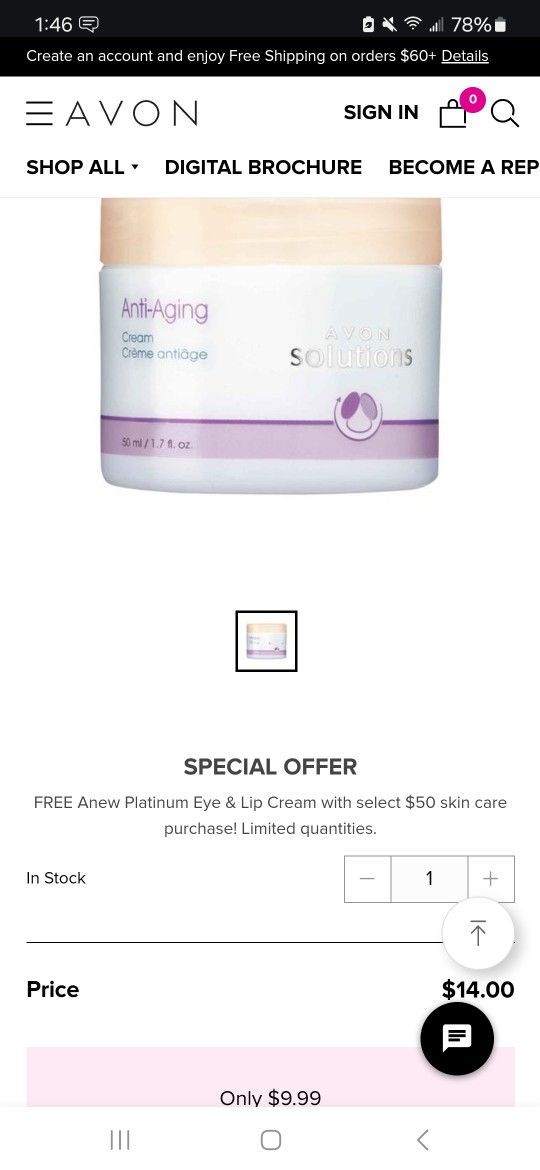 NWT Avon Anti-Aging Cream. Never opened. 1.7 ounces.
