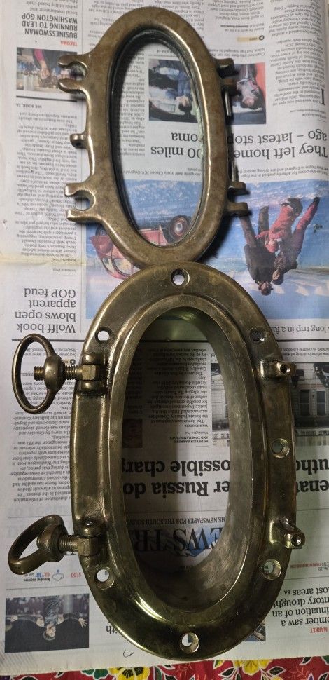 VINTAGE SOLID BRASS PORTHOLE FROM A CHRIS CRAFT 1954