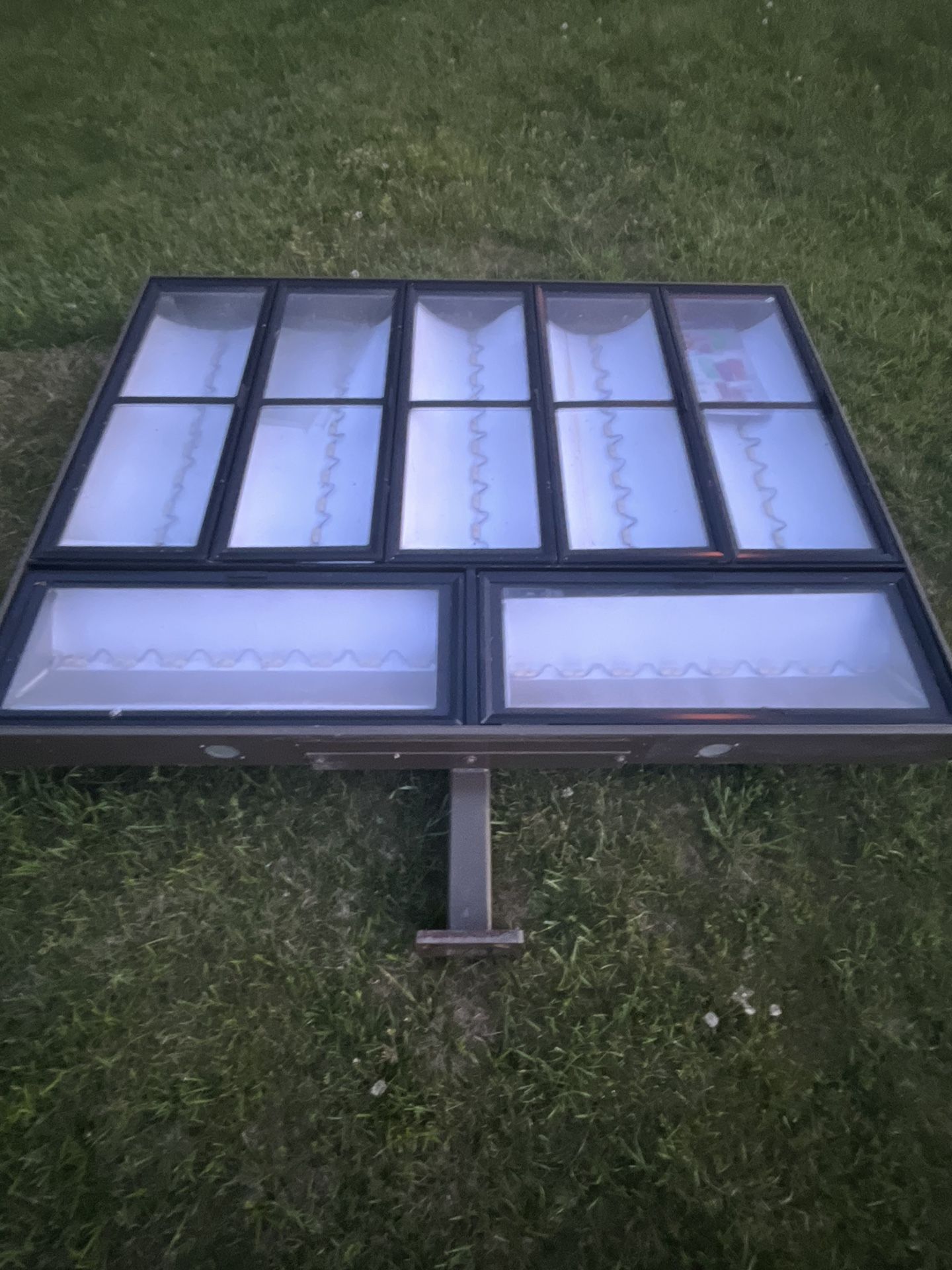 Roughly 6 feet x 8 feet including post height. 7 panel 277w outside menu board. Lights work. Doors and locks work. Used for around 7 years, still in excellent shape. Weighs approximately 500lbs. $ 500 OBO. Also have Delphi order confirmation screen with speaker box as well.