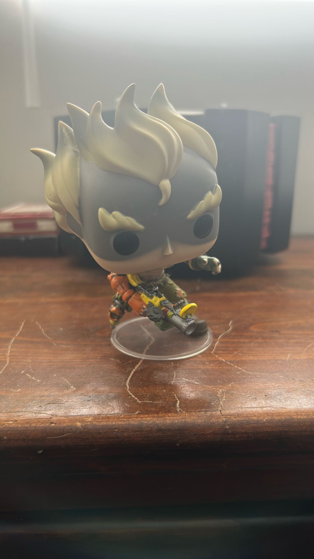 POP statue of the character Junkrat from Overwatch. Intact with no problems, comes with a stand to help it stand up thanks to his peg leg. Perfect for any fans of the character/game