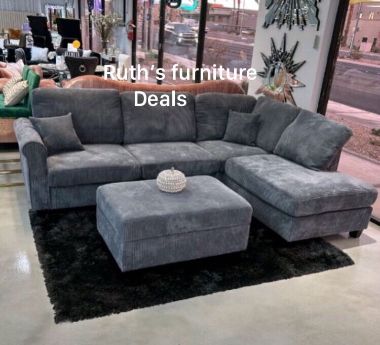 ✅only $429 No Tax 3-pc Sectional With Ottoman Dark Grey