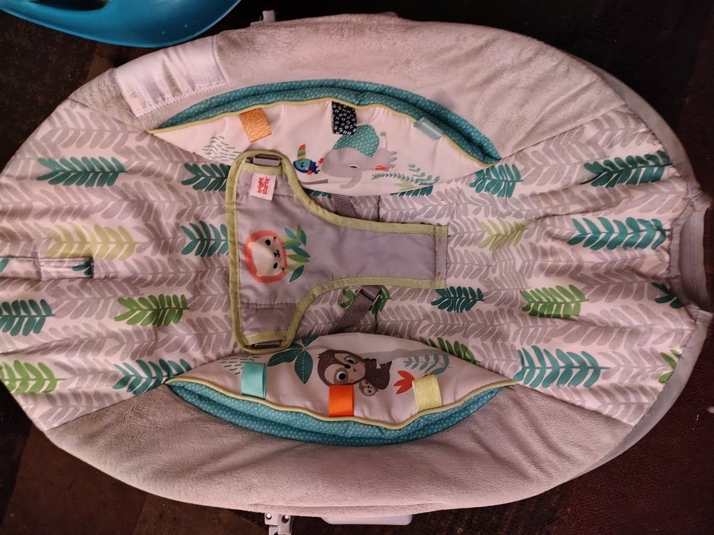 Pillow in good condition Rocker has not stains The tub has a lot of wear but the bath chair is like new
