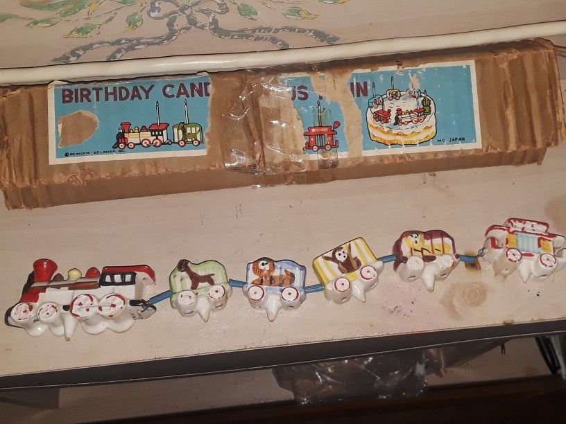 Vintage 1950s ceramic circus train birthday candle holders 13in long hand painted made by menschik-goldman
