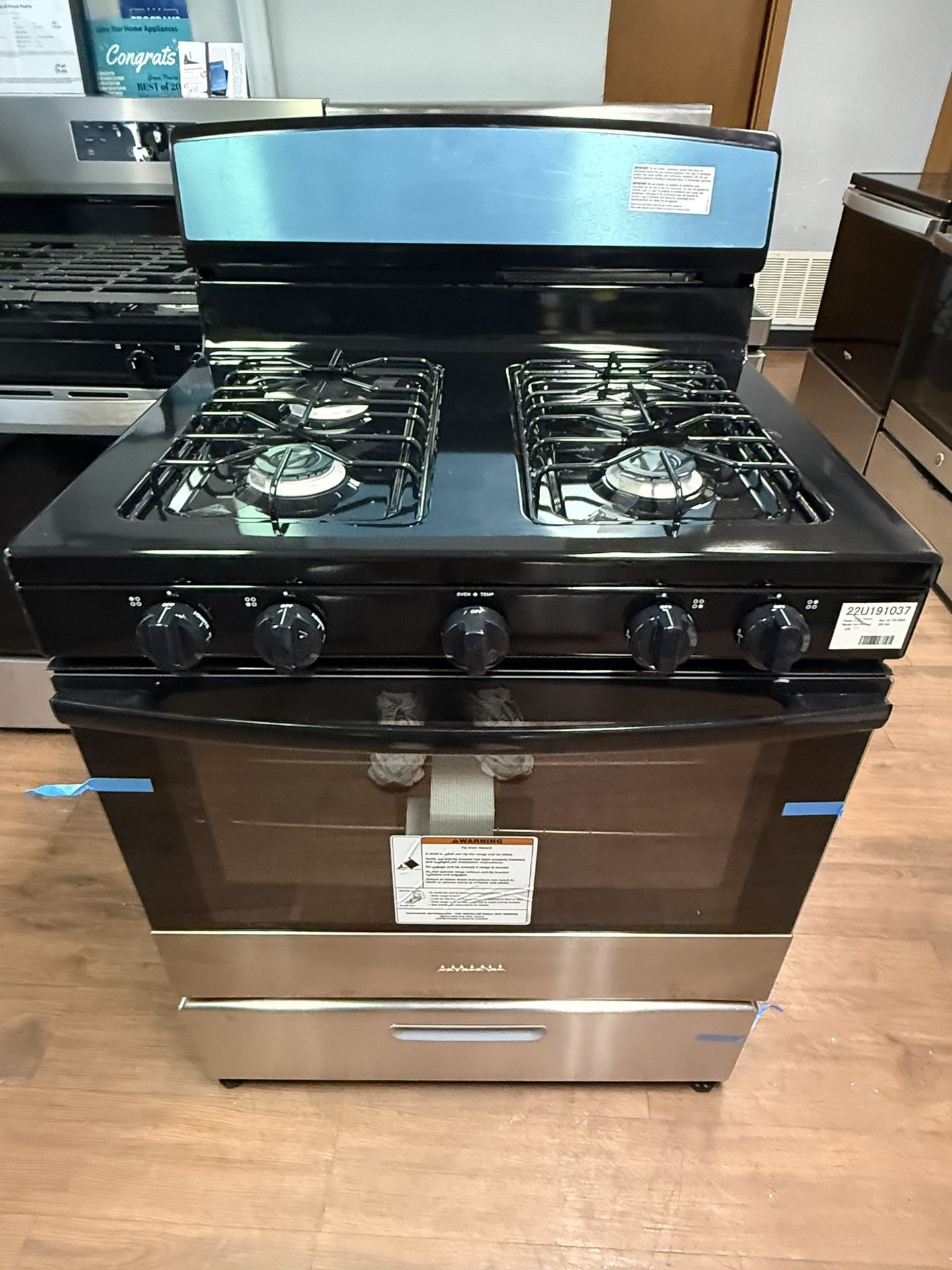New Amana 4 Burner Gas Range available for $499! One Year Warranty included! Delivery available! Estufa de gas Amana nueva disponible a $499! Garantía de un año incluida! Ofrecemos financiamiento sin enganche! Entrega a domicilio disponible! Lone Star Appliances