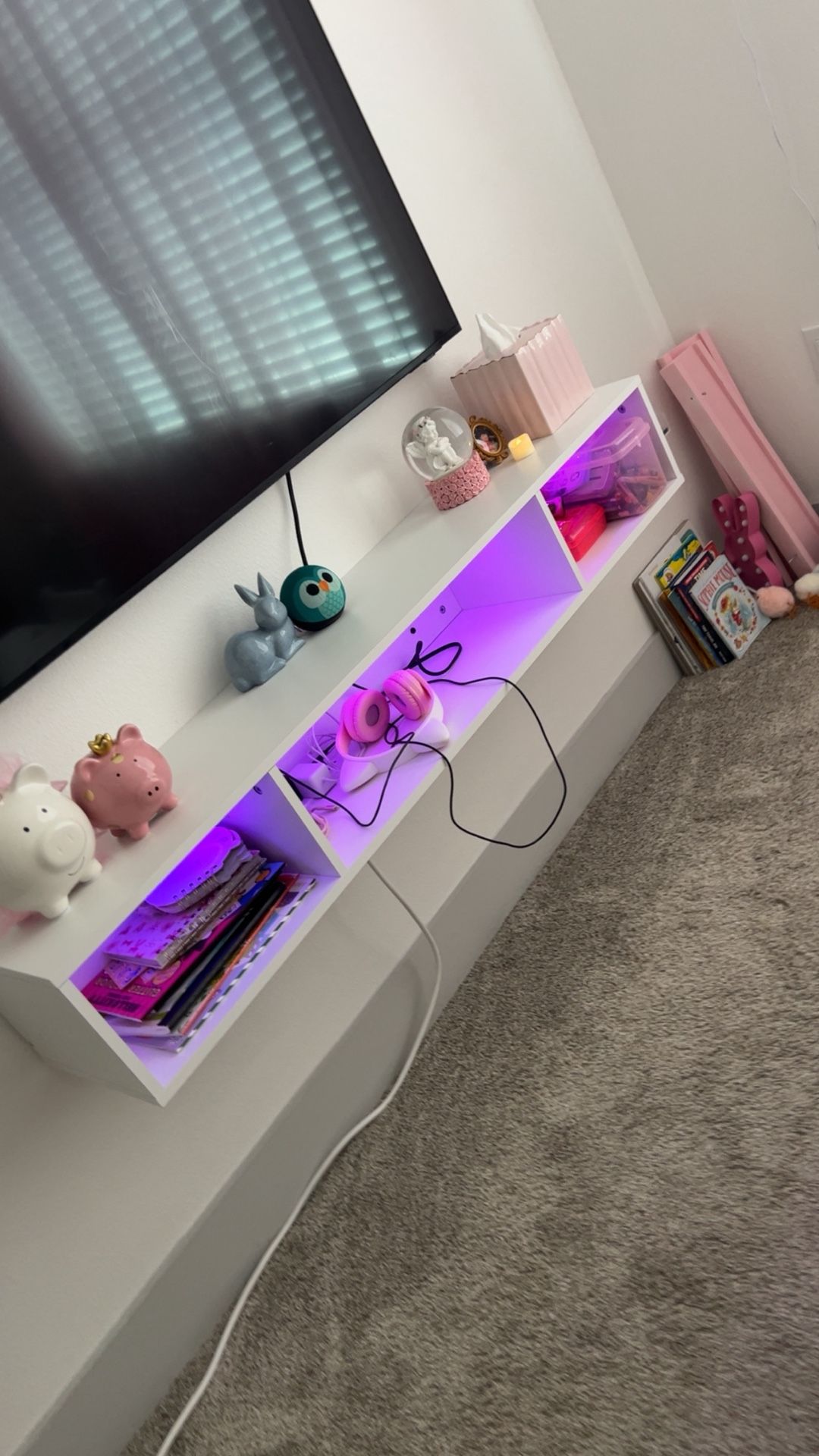 White Light Up Floating Tv Stand