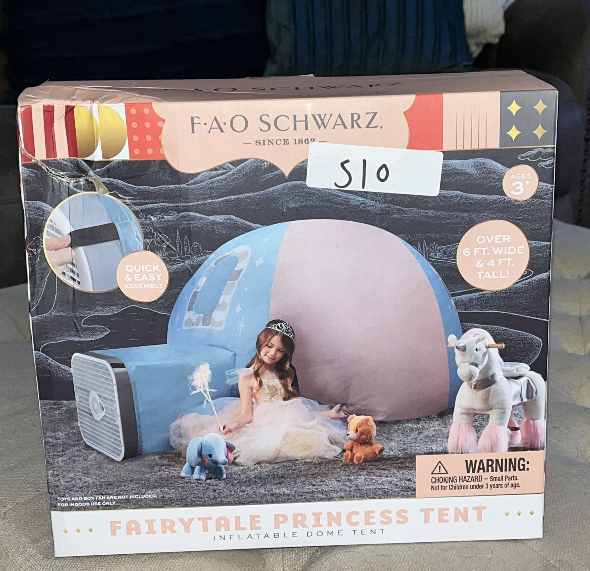 Perfect princess playtime! It inflates simply with a small box type fan. Brand new. Never used.