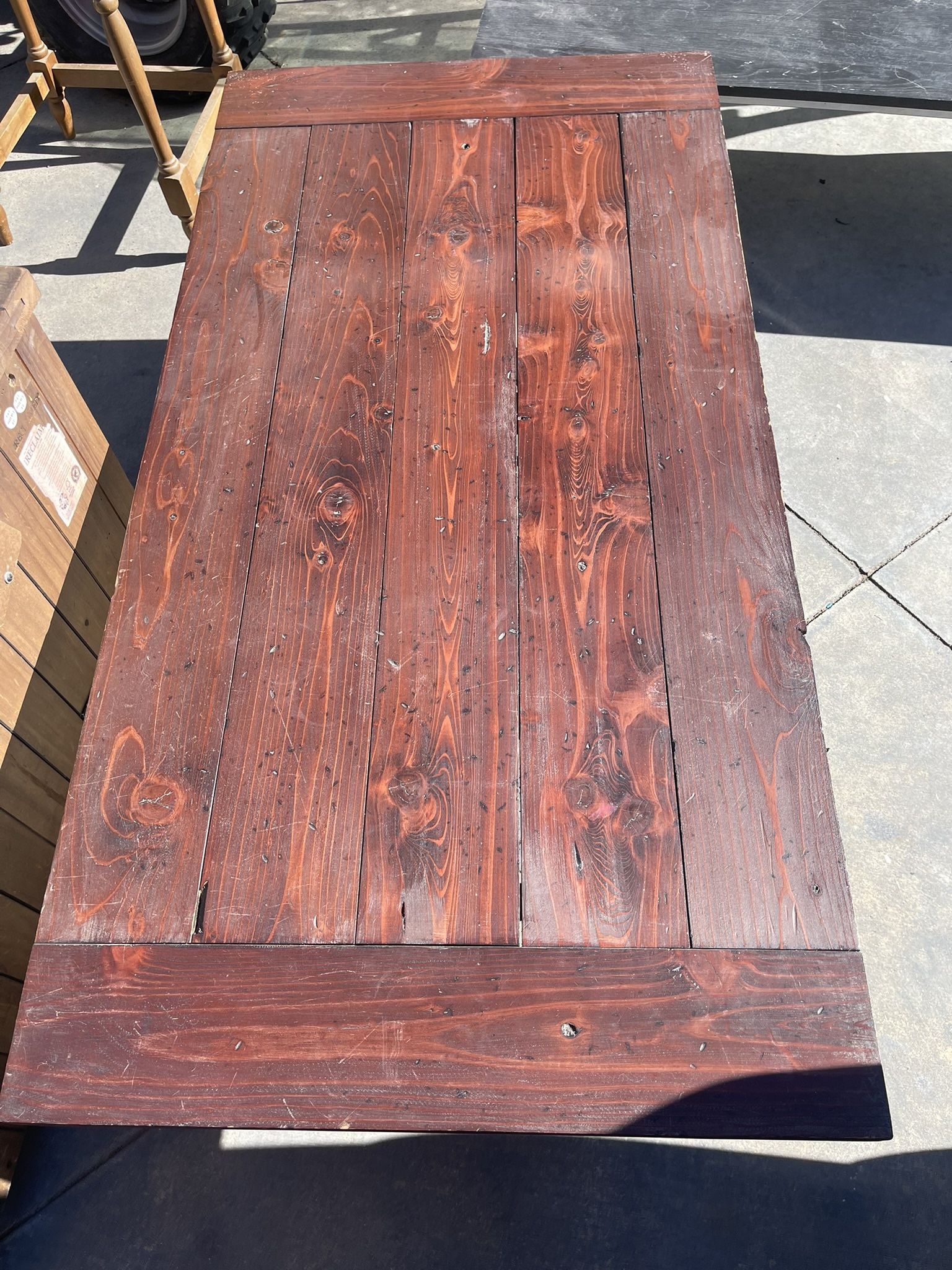 Solid wood coffee table with a hand-distressed finish. Very sturdy and heavy. Has been stored in the garage, so it’s a little dusty. Will clean up beautifully. 54.5X27.5X18 📍 Camarillo pickup
