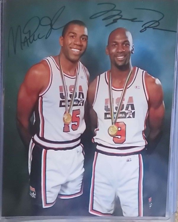 New Magic Johnson Michael Jordan USA Olympic Dream Team Professional Glossy 8x10 Photo * Signatures are Printed * Plastic sleeve not included