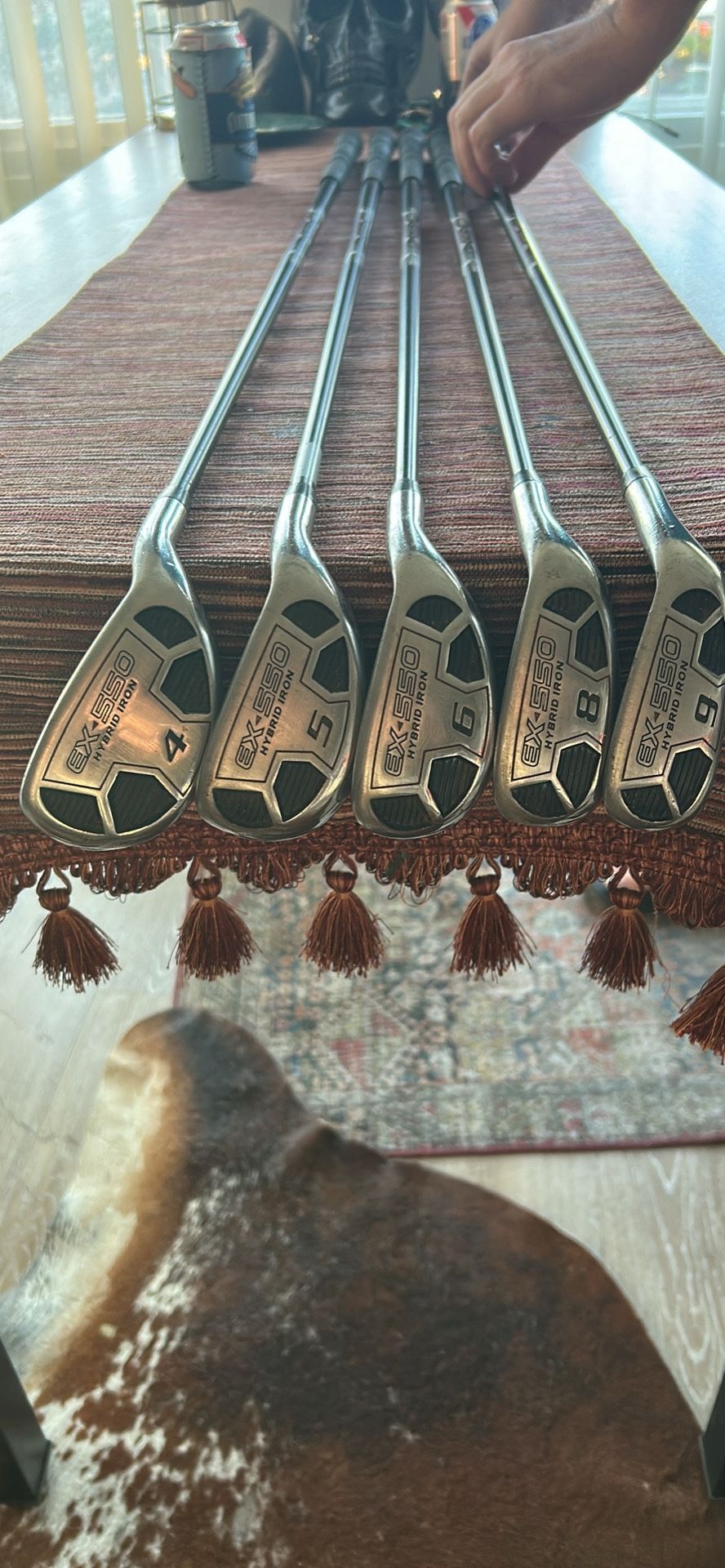 Men's Right-Handed 4 Iron through 9 missing 7 club PowerBilt EX 550 Seniors Flex Graphite Shafts Stock Powerbilt Standard Grips in Good condition Shaft Weight: 72 g EX-550 Sand wedge 56 degree P-wedge pinseeker bombshell These clubs are preowned. They have been hit and have marks from normal use. The faces and heads show wear from regular play. Overall, they are in good condition.Please see the photos. These clubs are 100% authentic!!