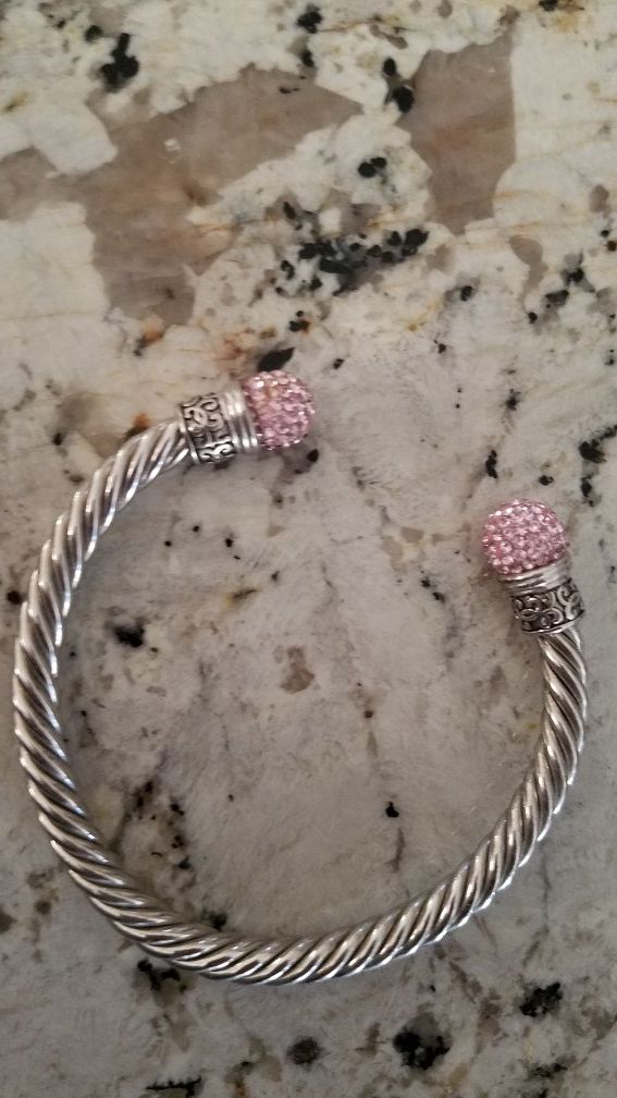 Pink crystals and stainless steel bracelet. Really shimmery and comfortable to wear.