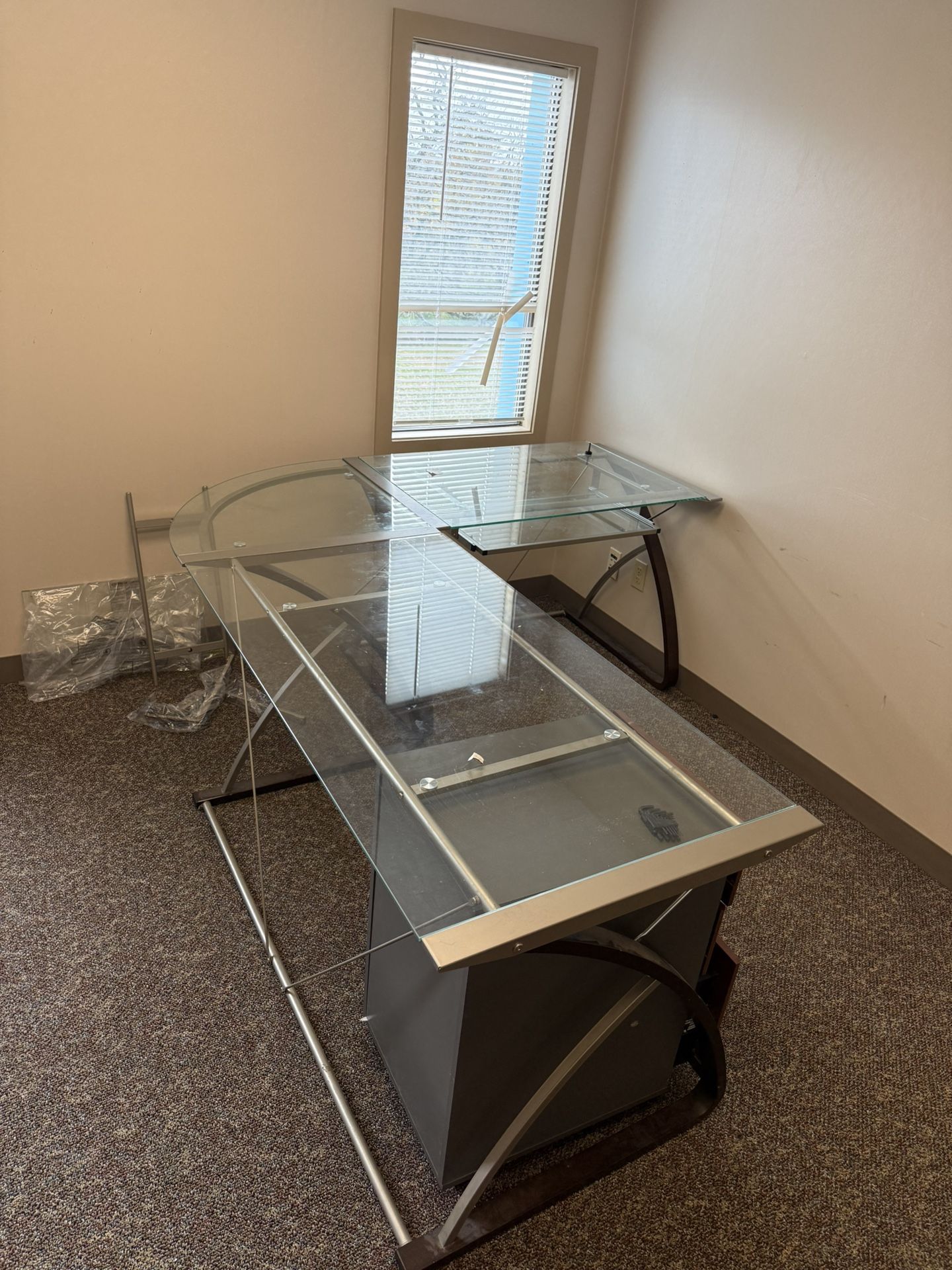 Modern L-Shaped Glass Office Desk – Delivery Included