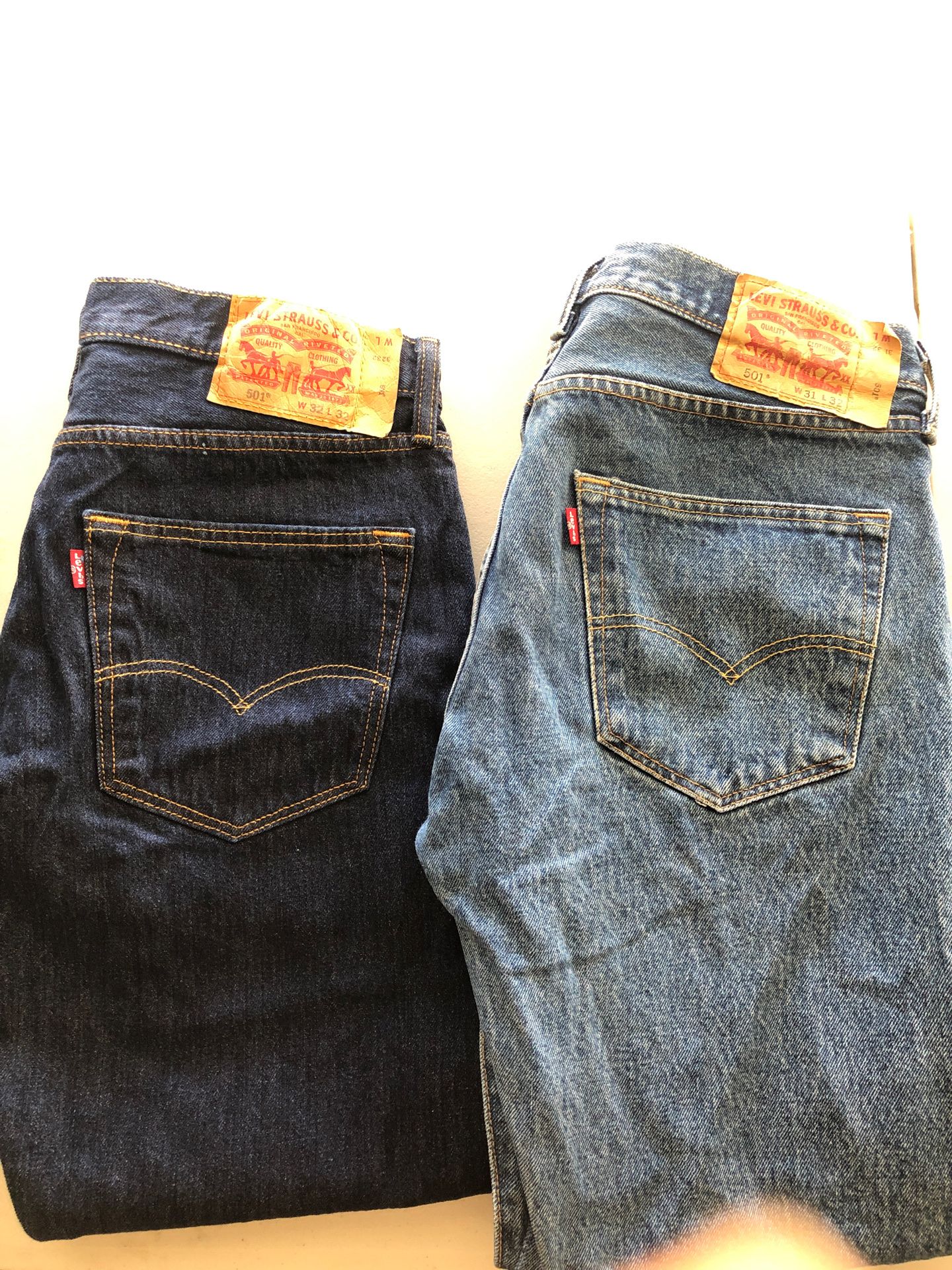 Used,Very great condition Size very * The 1st. picture are 501 size the light blue are W31 L32 Dark W32L32 $25 each * 2nd pictures are shorts 505 W32 $15.00 *3rd picture are dark gray slim straight W30-L32 $25 The beige pants are 513 Levi size W33-L32 $20 Habló español Pick up in Pacoima