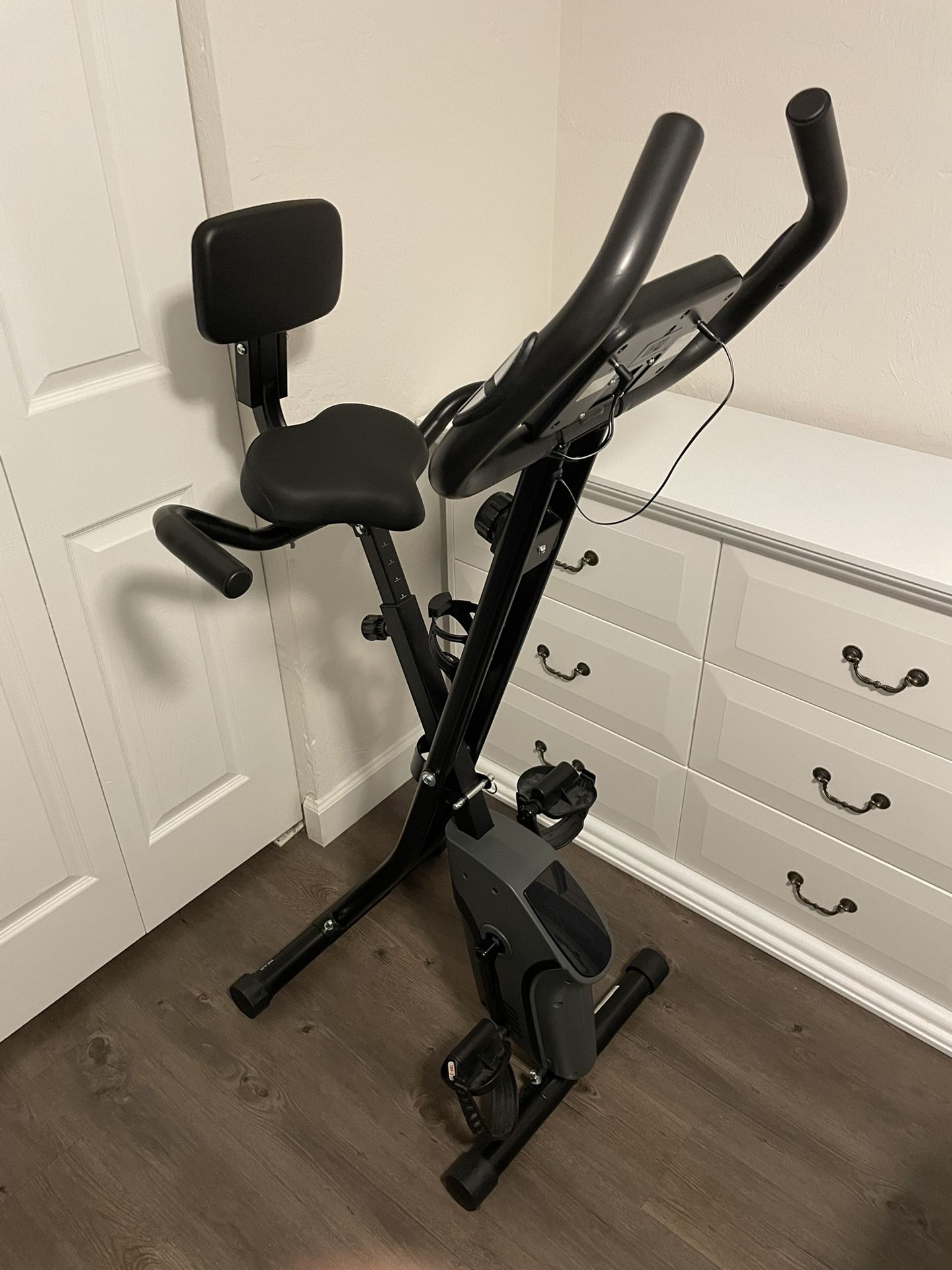 Foldable stationary bike ideal for small spaces. Mint condition.