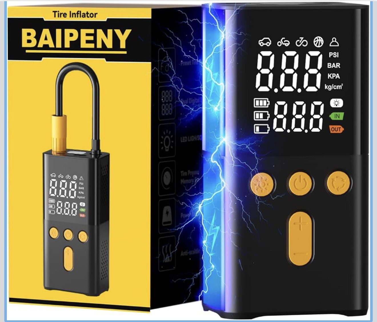 Portable Air Pump for Car Tires 150 PSI, 4X Faster Car Tire Pump with Digital Dual Values Display, Auto Off and Pressure Gauge Car Tire Inflator Pick up Melville ‼️‼️