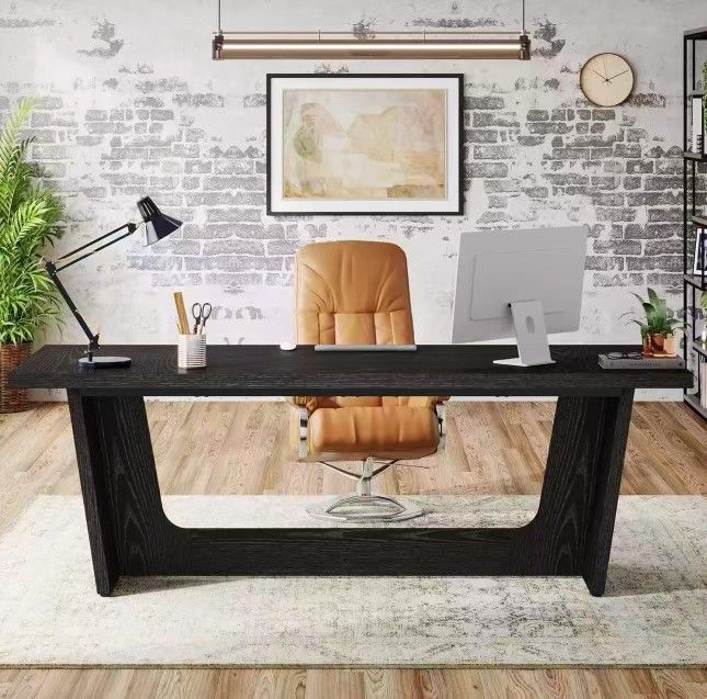JW1045 70.87-Inch Executive Computer Desk: Large Home Office Desk with Solid Wooden Pedestal, Industrial Wood Study Writing Table, Workstation Busines
