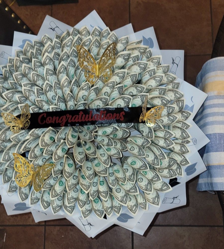 100 dollars in 1's bills Ribbon msg & butterfly .Require $25 deposit Nonrefundable if you cancel Duncanville area Serious buyer only Please don't waste my time Por favor no me hagas perder el tiempo