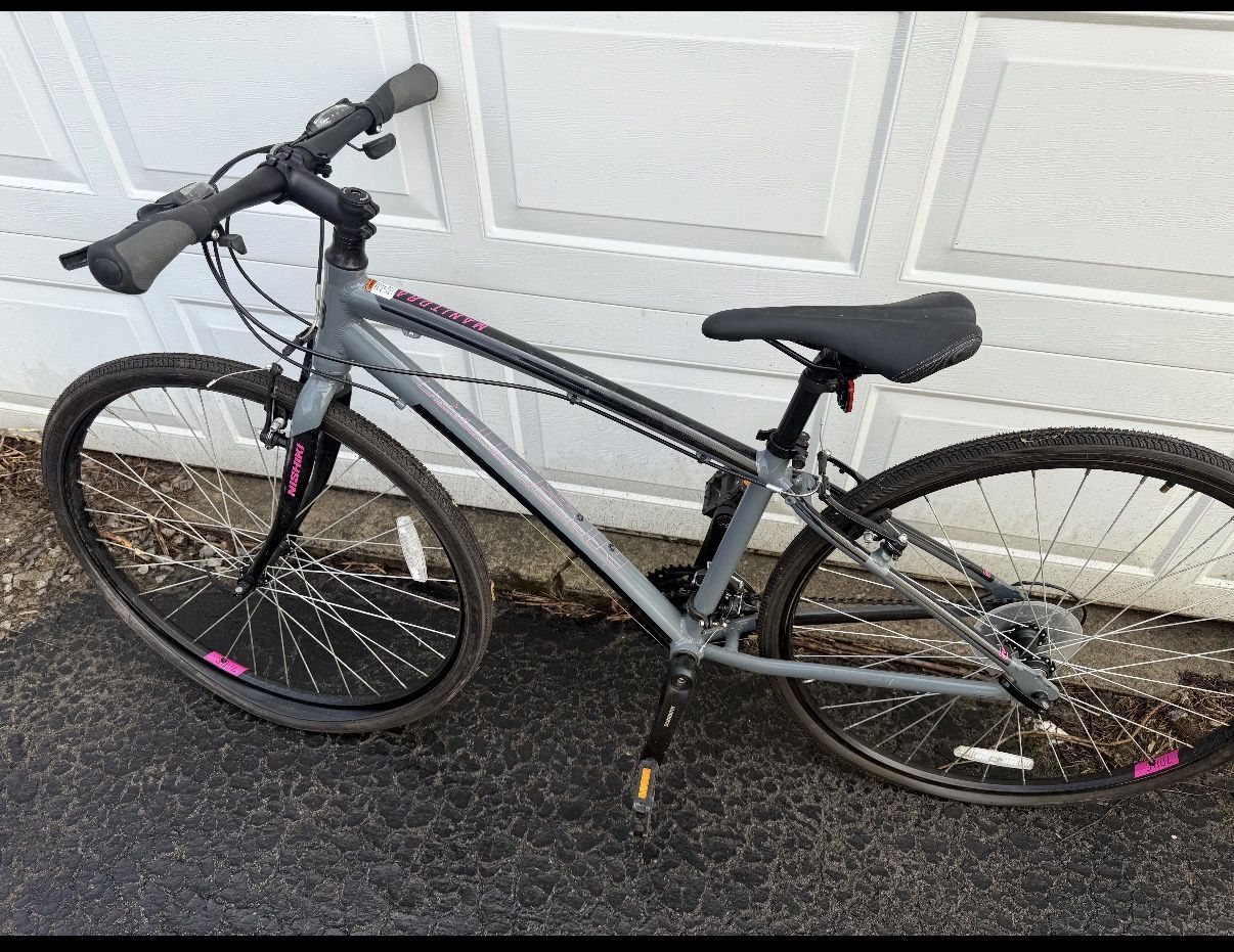 black and gray with pink manitoba nishiki shimano 7 speed bike. 24 inch wheels, might need new tubes. Barely used Can deliver for a fee