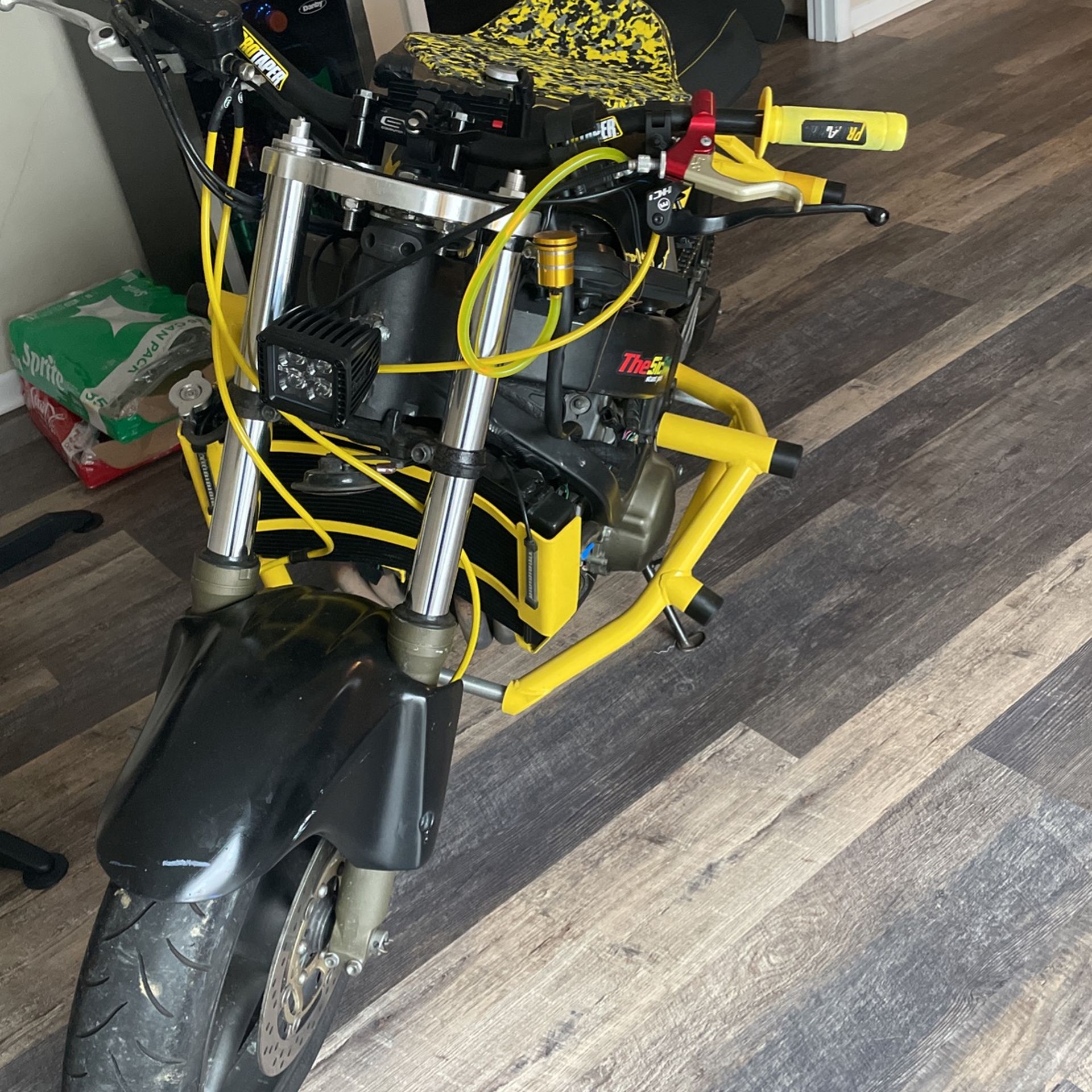Honda F4i stunt bike Texas Tang tank 65 tooth rear sprocket Dixer rear dual caliper bracket Dixer shorty exhaust Dixer wheelie oil pan Custom rear seat (foot hole wheelies) Cocks full cage Cocks half frame Cocks sub frame Cocks scrape plate (never installed) Led front headlight Key switch eliminator Dixer rear sets Brand new gold chain Fresh oil change The sic shop quick fuel line disconnects The sic shop full set yellow braided brake lines RSC 1 finger clutch HC1 hand brake Pro taper fat bars Suspect radiator crash cage $5,000 or make a offer