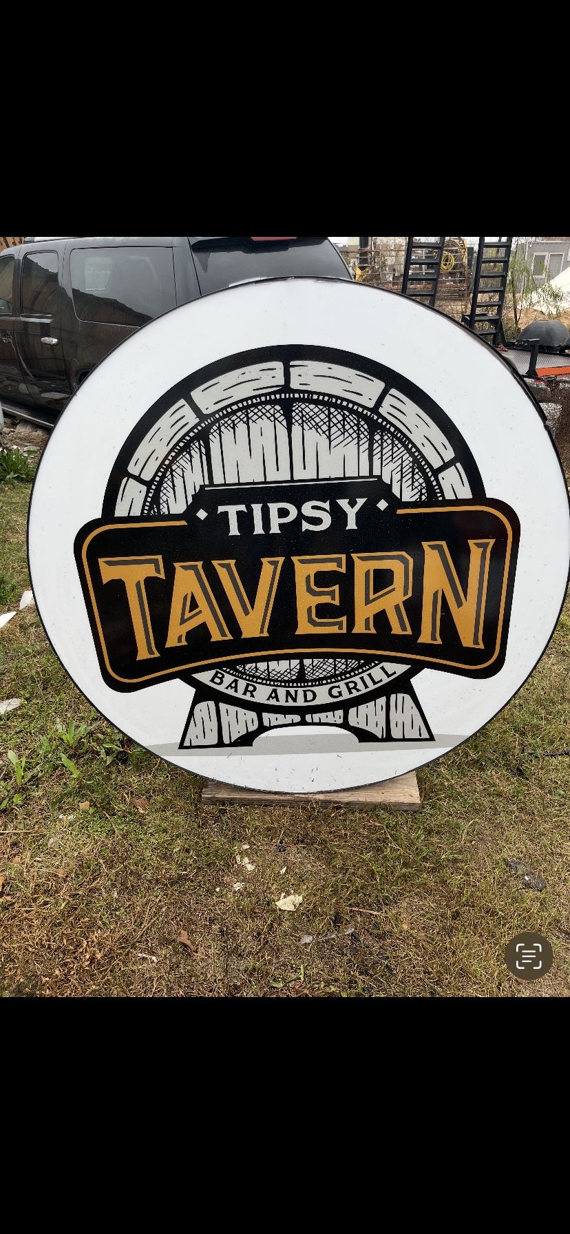 Man cave de court that your man actually likes!!! Big 53” TIPSY tavern round sign Man cave pool room bar cool decor Houston 77045