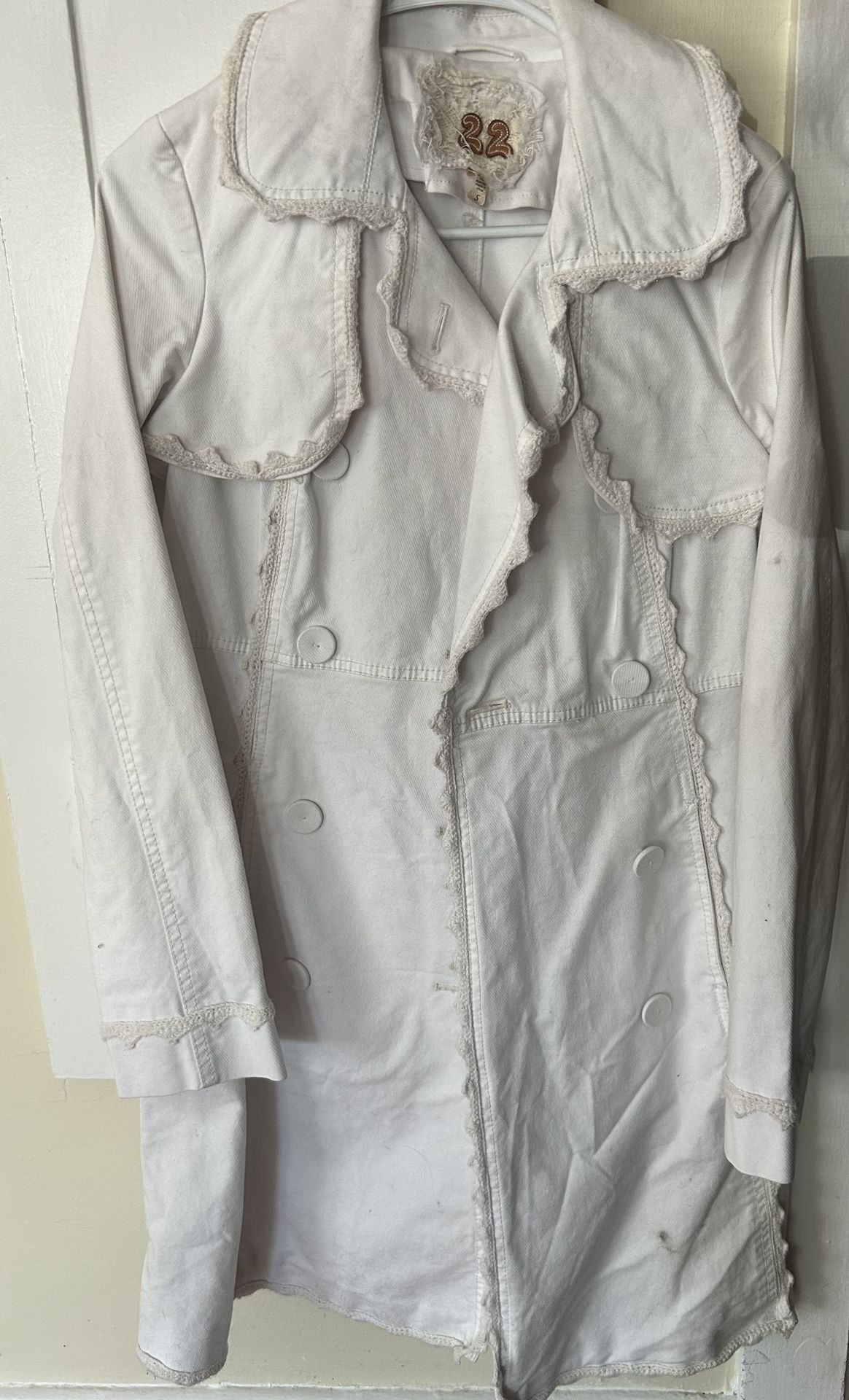 Heavy white detailed button up coat small