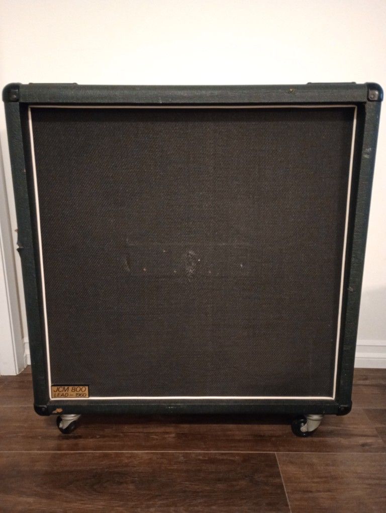 Fully functional Marshall JCM 800 Lead - 1960. 300 watts, 4 x 12" speakers. Four caster wheels for easy maneuverability. Height: 32 3/4", width: 29 1/2", length: 14". Some wear and tear, all cosmetic. Price listed, or best offer.
