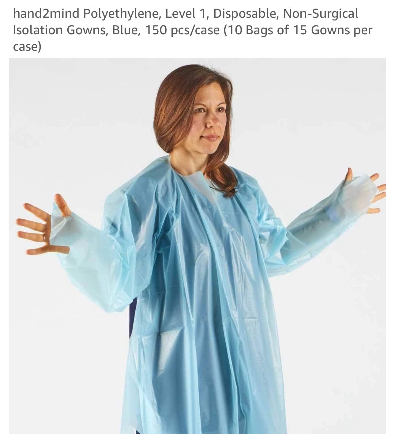 Polyethylene Level 1 Disposable Non-Surgical Isolation Gowns, Blue, 150 pcs/case (10 Bags of 15 Gowns per 600 Total!!!!