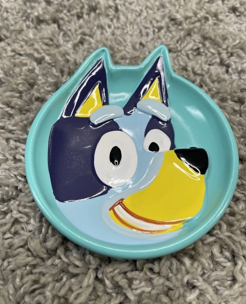 Bluey Soap Dish Face Small Resin Trinket Tray Home Bathroom Decor Blue New