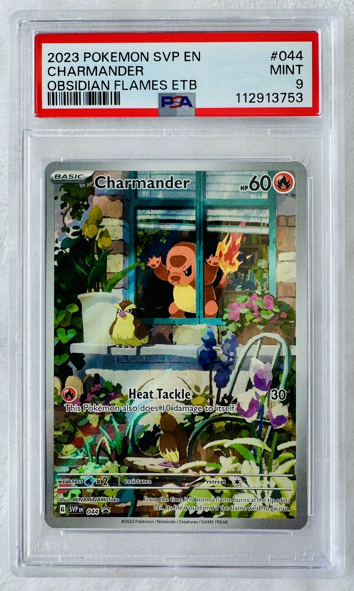Charmander Illustration Rare 2023 Obsidian Flames Elite Trainer Box Promo PSA 9 Mint Asking $35 or Best Offer.