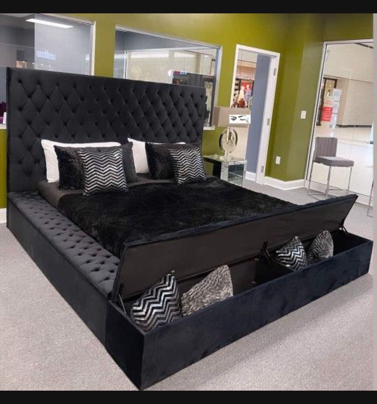 Modern Black Velvet Queen Bed With Storage 🤩brand New💯 Color Options 🌈