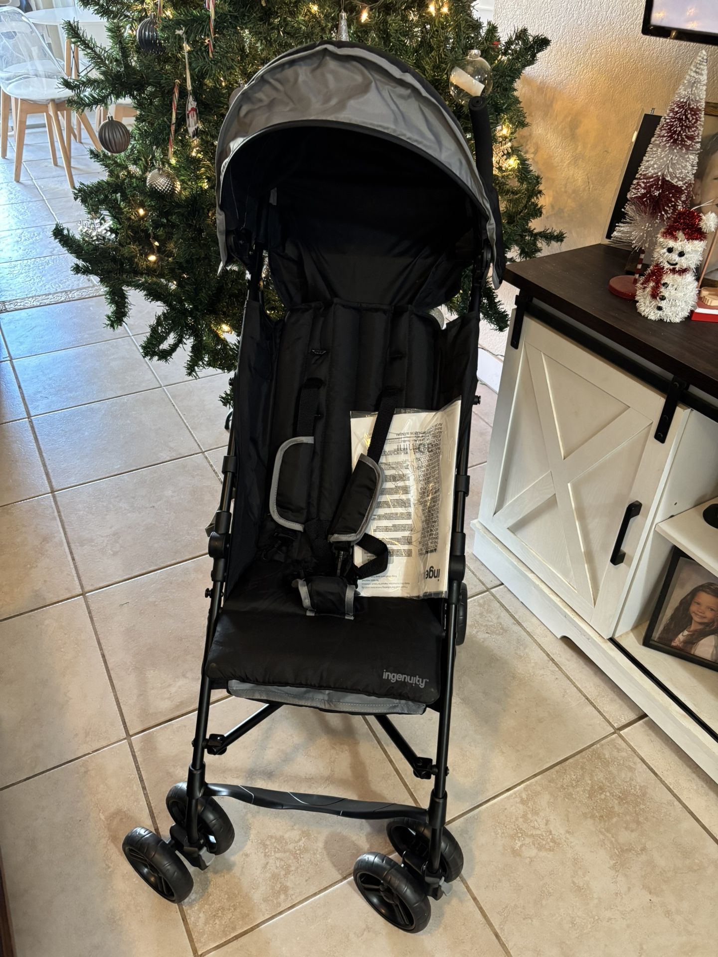 Ingenuity 3D Mini Convenience Stroller – Lightweight Stroller with Compact Fold, Multi-Position Recline, Canopy with Pop Out Sun Visor and More – Umbrella Stroller for Travel and More, Gray New in box Sells for $70 asking $40 obo