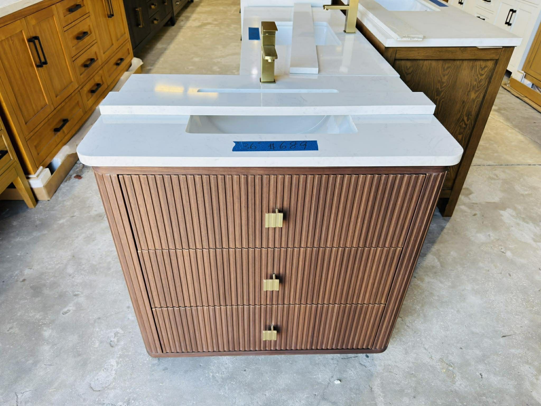36 in Single Sink Bath Vanity in Walnut Color with Marble Top in White $689
