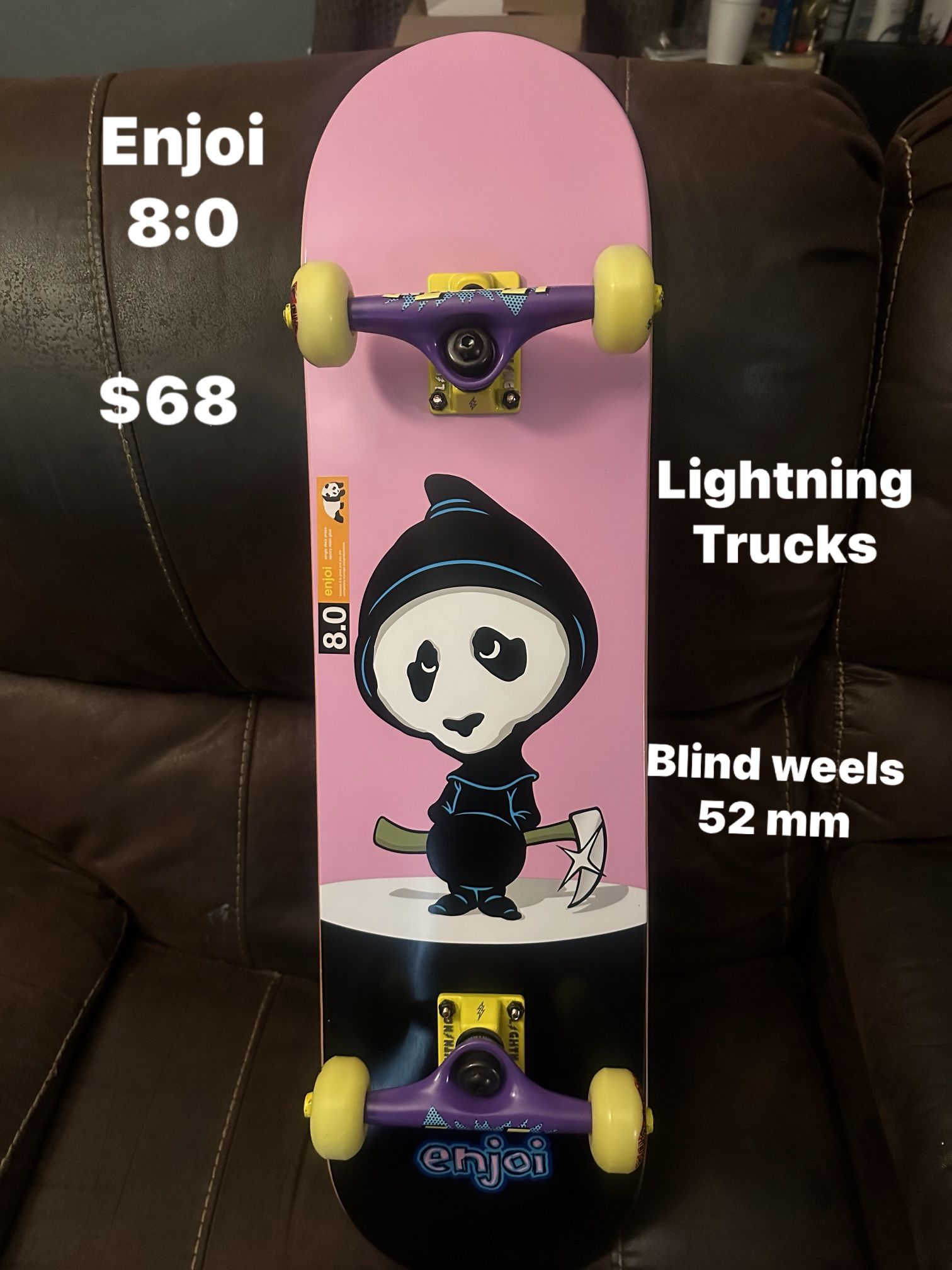 Enjoi 8:0 complete $68 Lightning trucks Blind weels 52 mm Grizzly grip Litezpeed bearings
