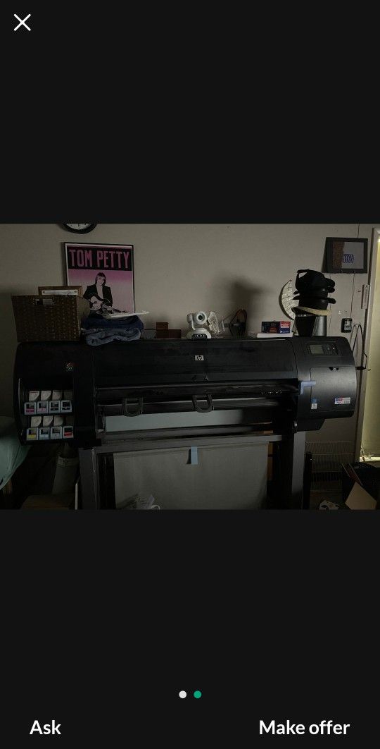 Used large format printer. One broken print guide. Missing cables and print tray curtain. Functions fine. Instruction manual included.