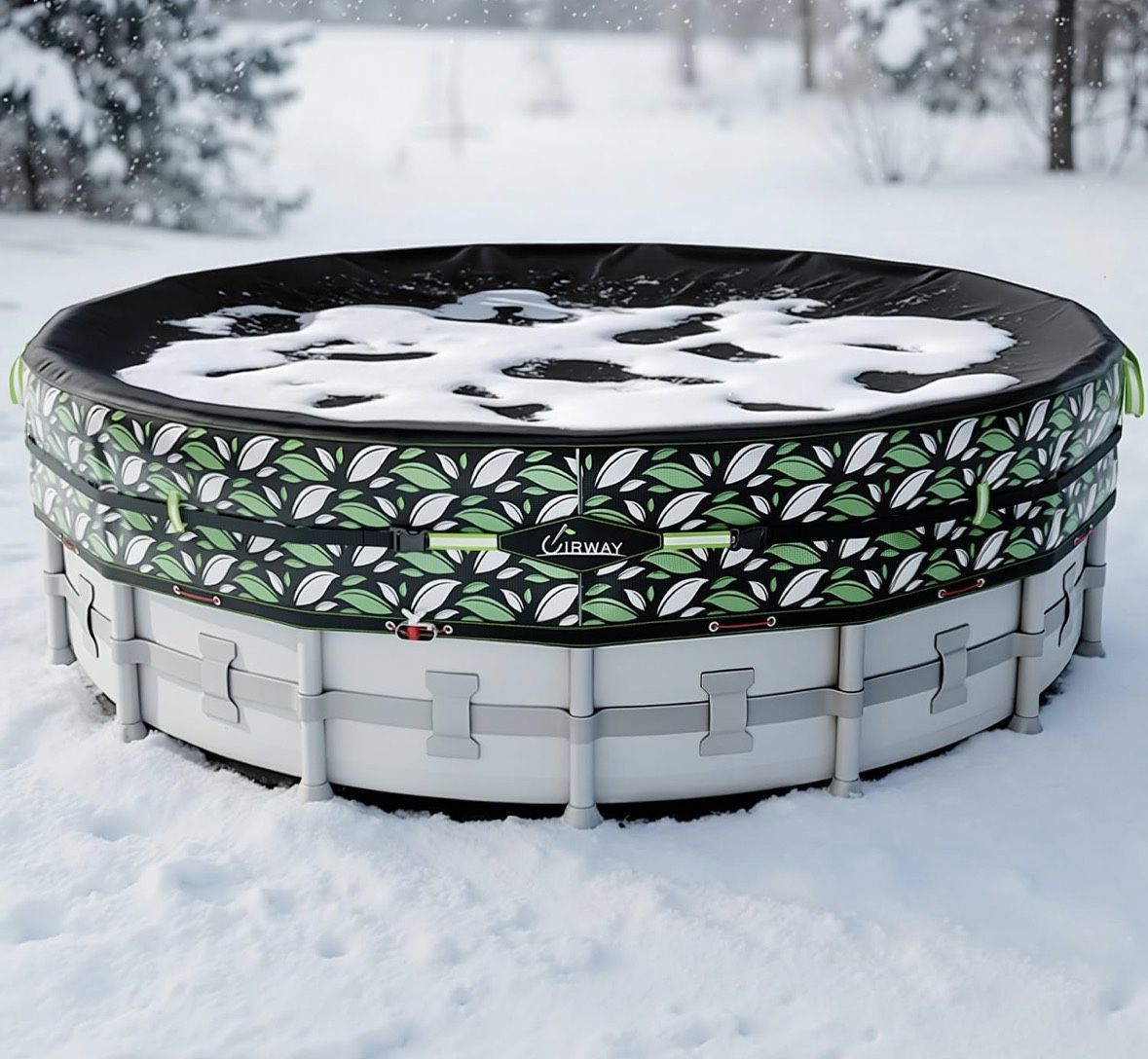 UIRWAY 2025 Upgrade 33FT Winter Pool Cover [185GSM] Heavy Duty Pool Cover for Above Ground Round Pools, UV & Cold Resistant Swimming Pool Cover, Tearproof Tarp with Cable System