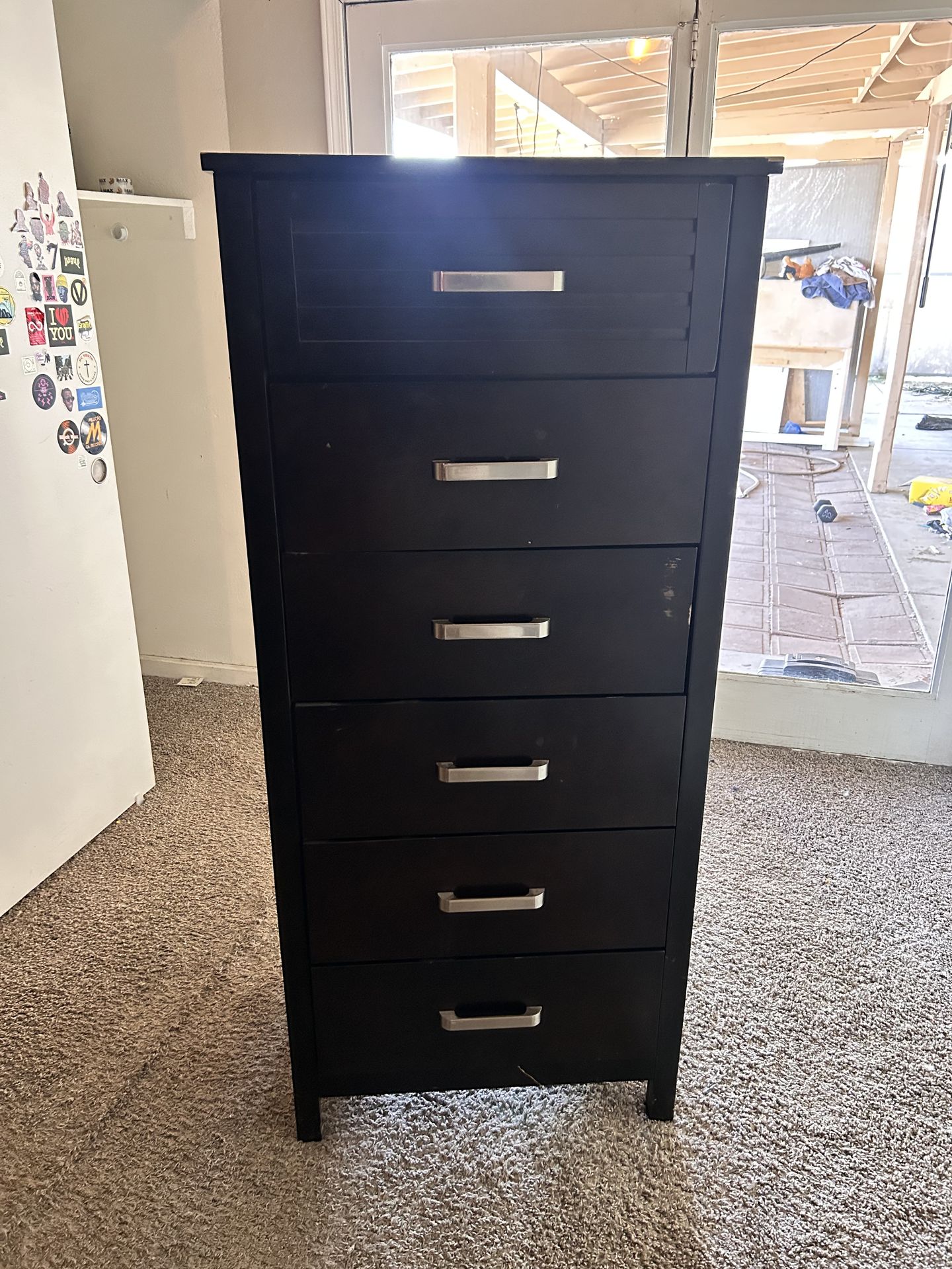 Free, dark brown dresser. Has some paint scratches and roughed up edges. Along with one of the drawers being slightly broken. (off the drawer hinges.) the dresser brand new was around 350. Easy fixes, but I’m moving and I don’t have the time.. thanks