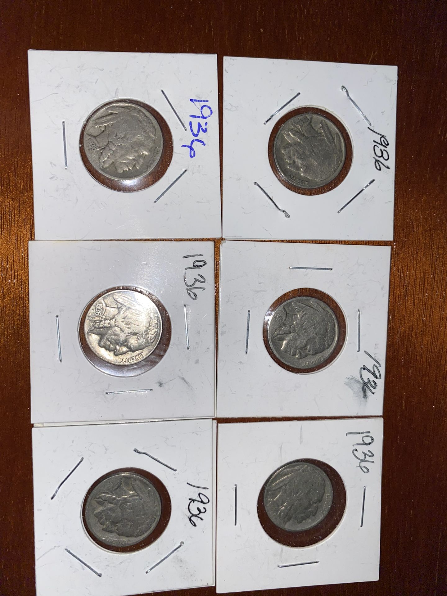 Lot of 6 buffalo Nickels for sale. They are part of my personal collection. It’s a season for everything. Get it while it’s up for sale. What you see is the actual items you will receive. I’m not sure of any defects. I have not examined them. Asking $150. If you can find a cheaper and better deal, be my guest.