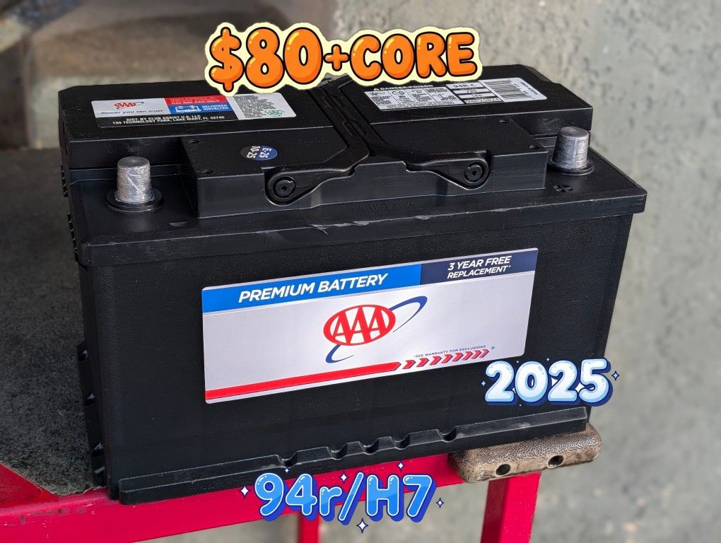 Car Battery Group Size 94r/H7 2025 In excellent condition. Fully Tested. $80 with core exchange (old battery) or $90 without. You're welcome to bring your own tester, but I'll also provide one. Payment accepted via Cash or Zelle Located in Boyle Heights.