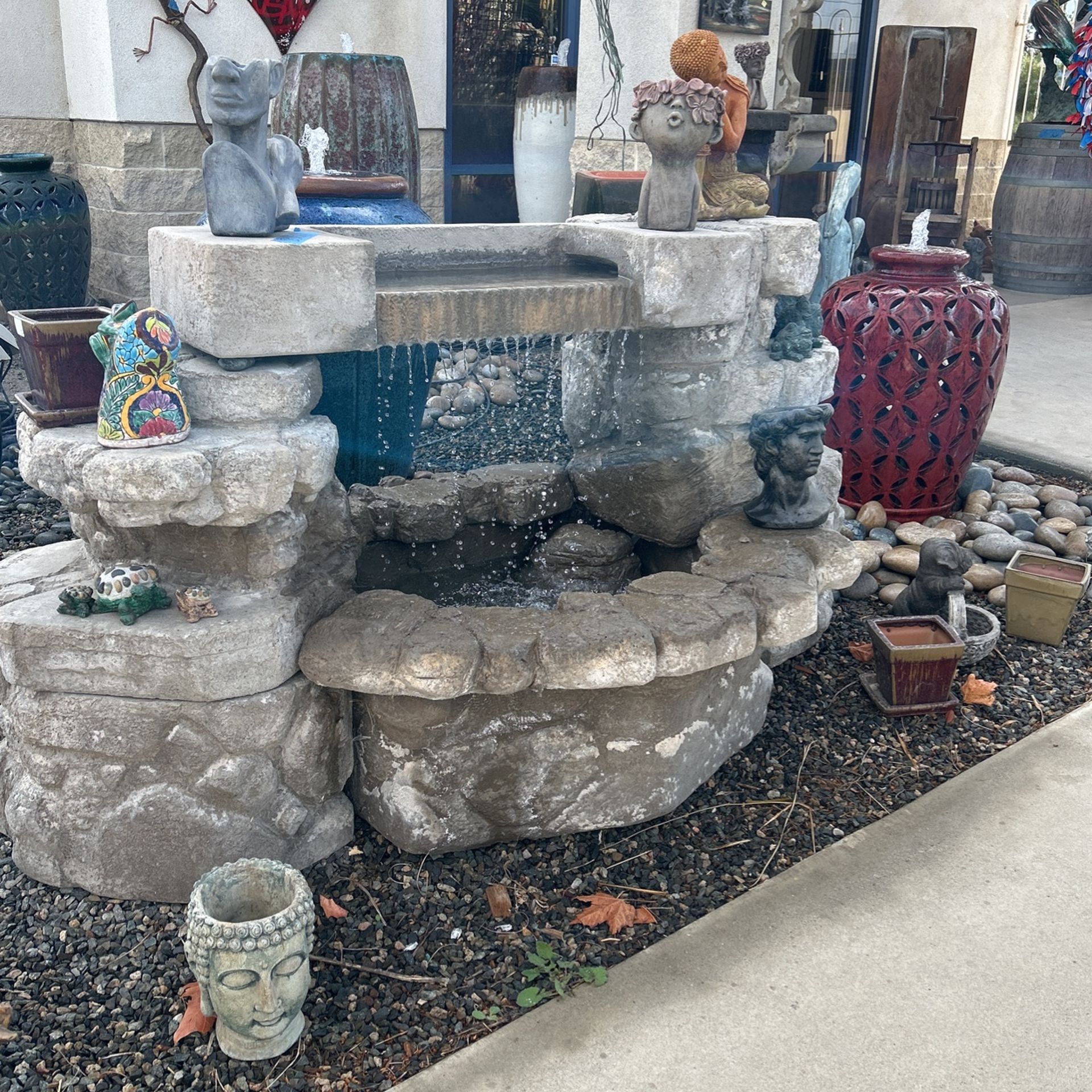 Gorgeous fountain … perfect Christmas gift idea!!🎅🏻🤶 We can arrange delivery and set up In time for the holidays👍 6 ft long x 3 1/2 ft tall x 2 1/2 wide We have dozens of fountains to choose from…41034 elm murrieta Open every day 9 to 4 Prices vary🎅🏻