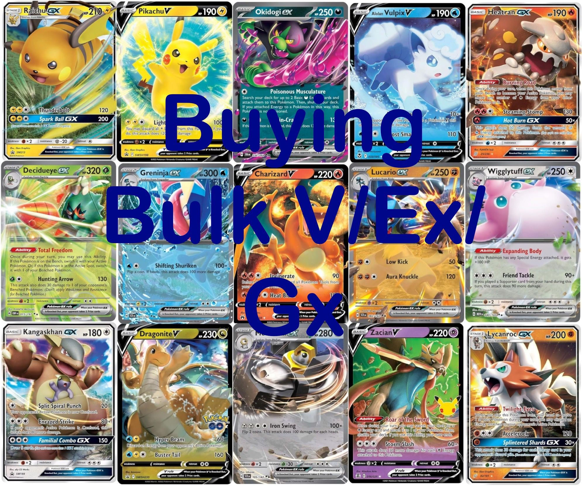 Bulk Pokemon V, Ex, and Gx cards. Giving .30 cents per cards. Near mint condition only. Meet up in Whittier or LA Elysian Valley.