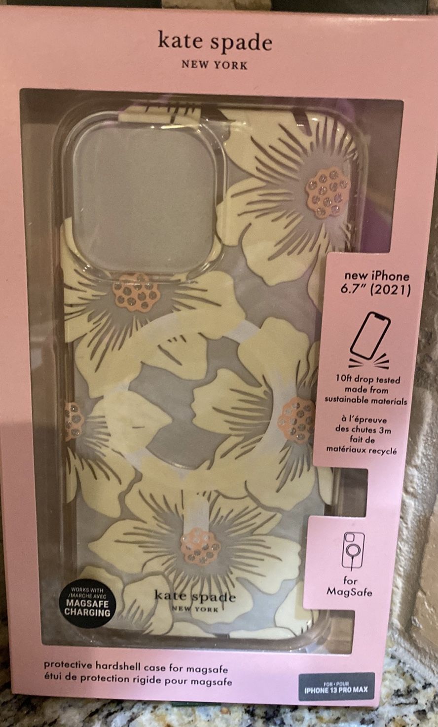 (8) kate spade new york Protective Hardshell Case for MagSafe for iPhone 13 Pro Max - Hollyhock Floral Clear