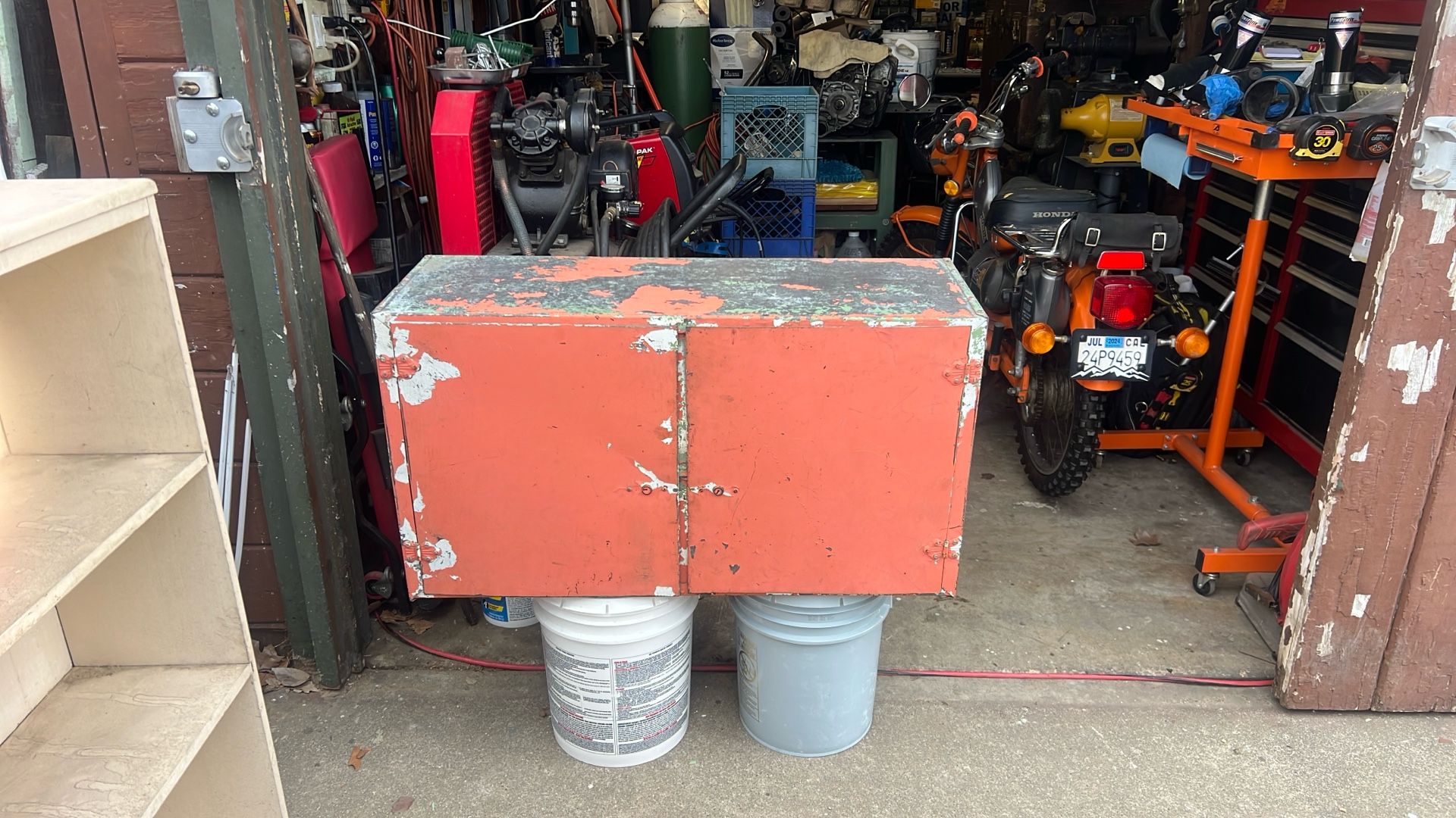 Yes it can use some paint or leave it as is for that man cave worn out look… you be the judge…don’t have the keys 🔐 but can easily be replaced if need it. Need storage space? For mechanic books/ computer analyze equipment/tools & more
