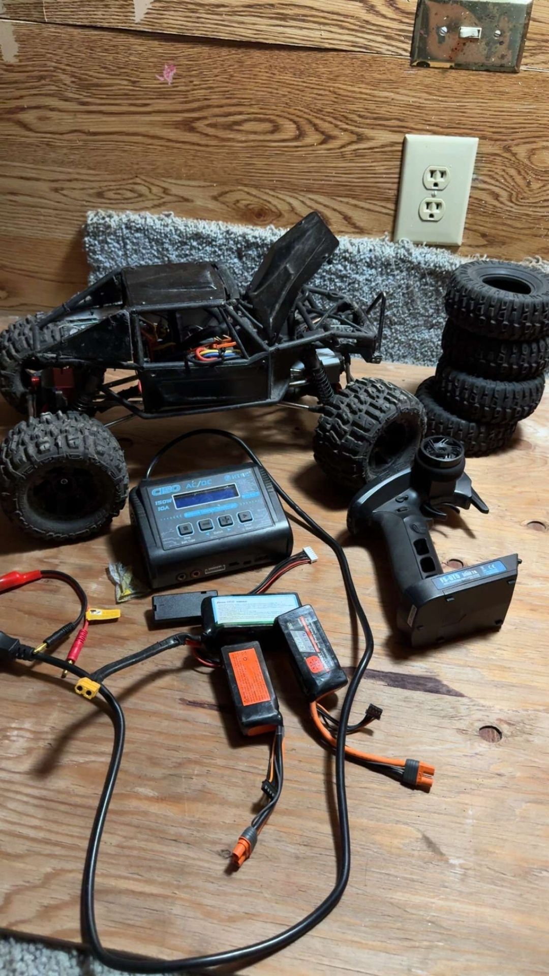 Rear steered converted good crawler comes with everything in picture 3, battery’s with charger, new controller barely used tires no rims upgraded servos
